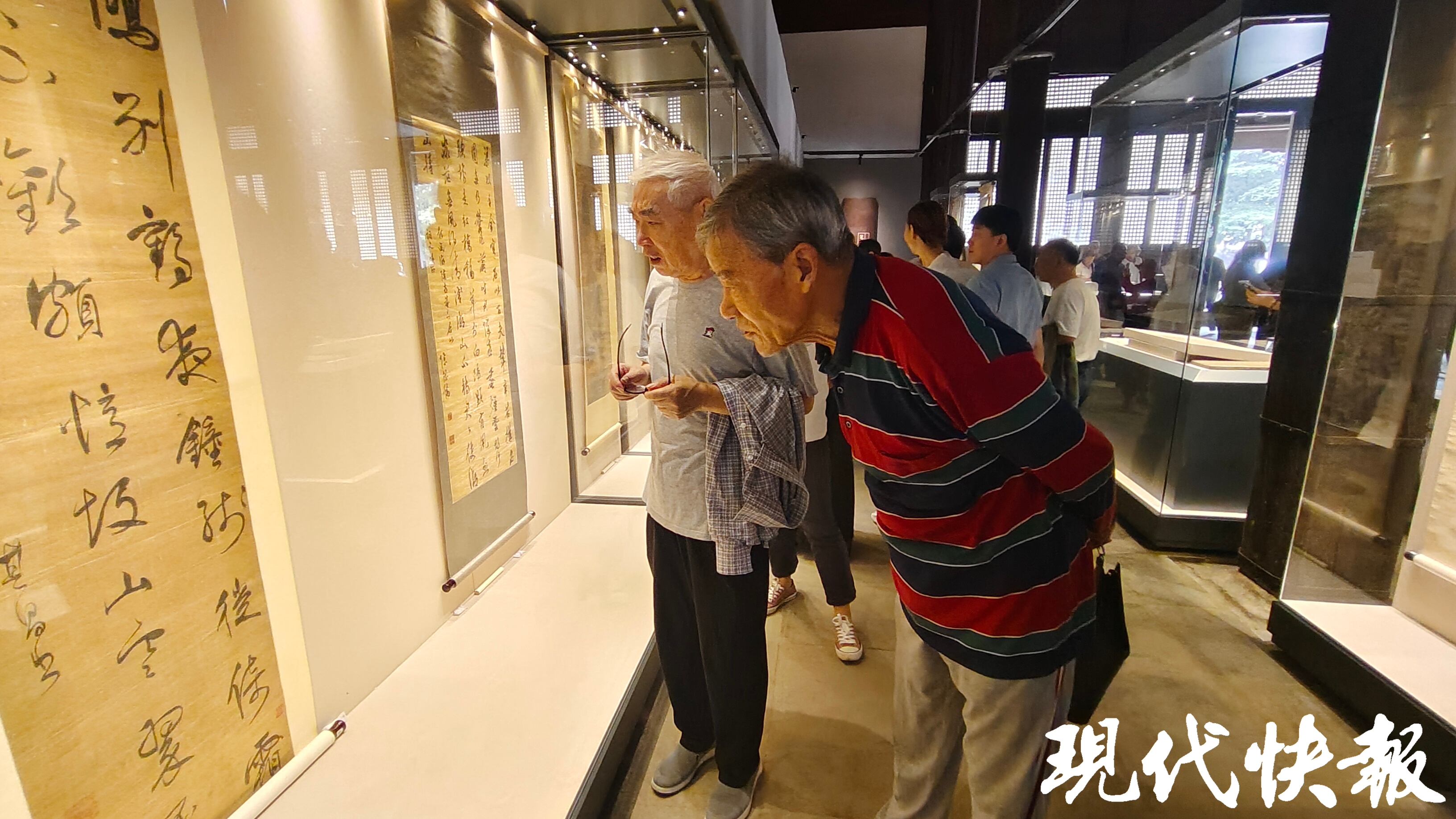 现代快报记者了解到,此次展览汇聚了1000余年间的百余件国宝级精品重器。其中,全球仅存的元代釉里红开光祈雨图大罐、唐寅《怀楼图轴》以及首次公开展出的《海瑞信札册页》等珍贵文物,吸引众多观众驻足。