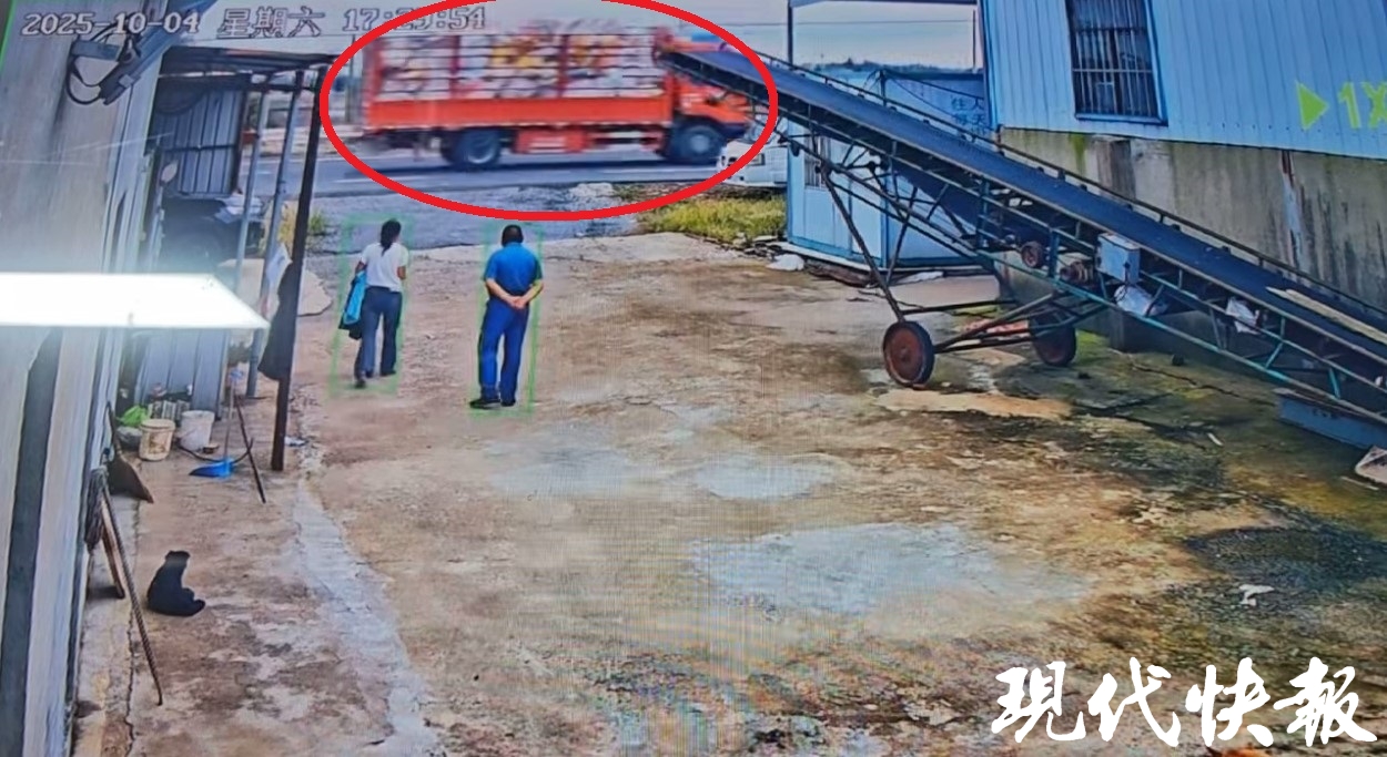 听到声响,路人赶紧报警。路边养殖场的老板也赶紧叫停大货车,养殖场内的一条黑色狗狗听到声响,原本乖乖坐着,突然起身狂奔过去看情况,也被眼前的一幕惊呆了。