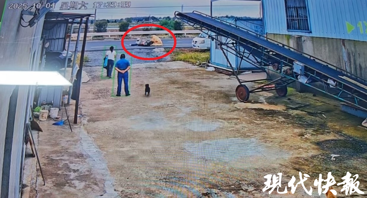现代快报讯(通讯员 朱昌旺 欣交轩 记者 刘媛)10月4日,张某驾驶一辆重型货车,途中,车上装载的大口径编织袋因未捆绑牢固被吹落,恰巧后方有一名女子骑着电动车,脸和车都被编织袋裹住,女子急刹车后摔倒,摔出去近10米远。路边一只坐得远远的狗狗听到声响,也立马起身跑过去看情况。
