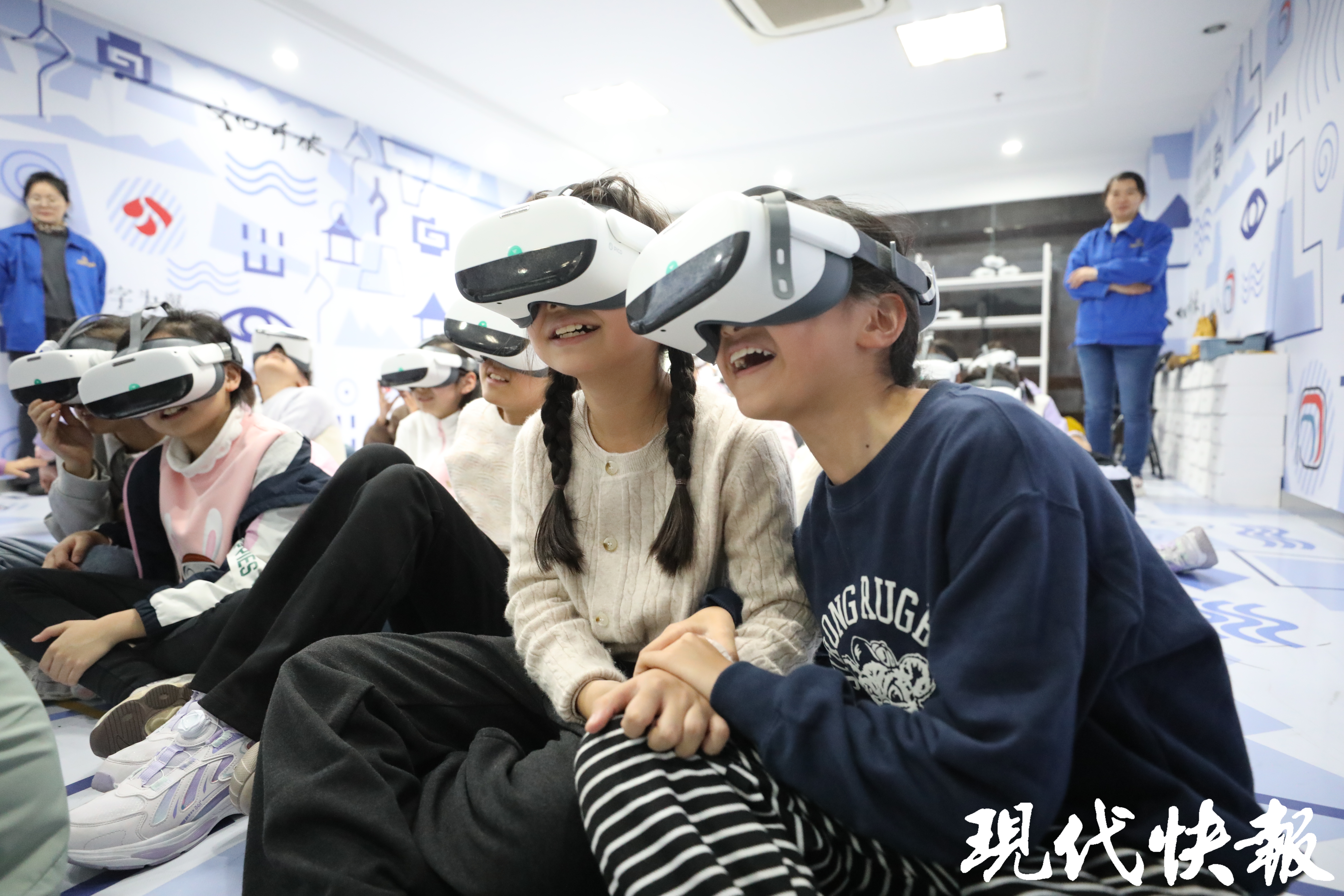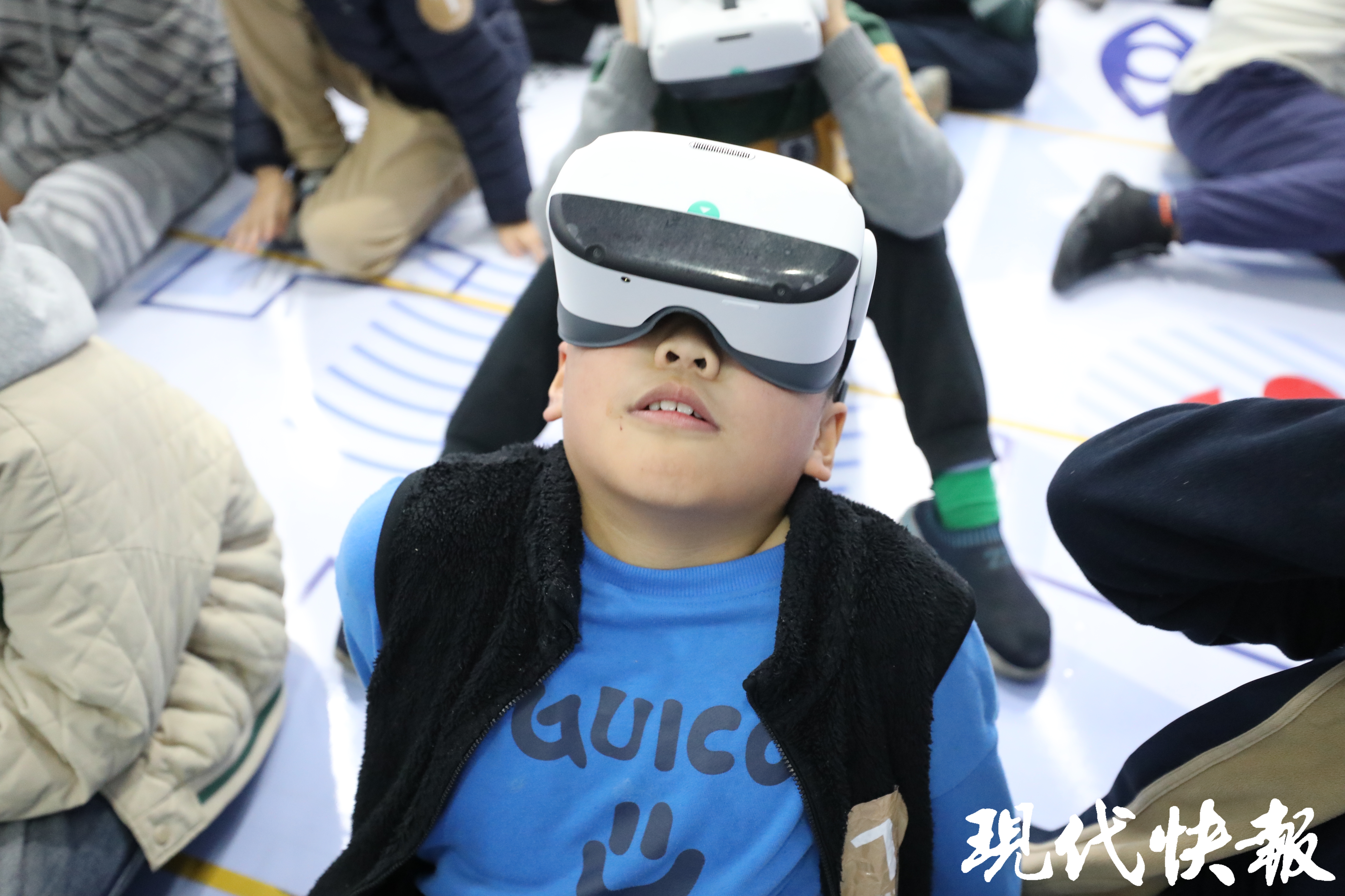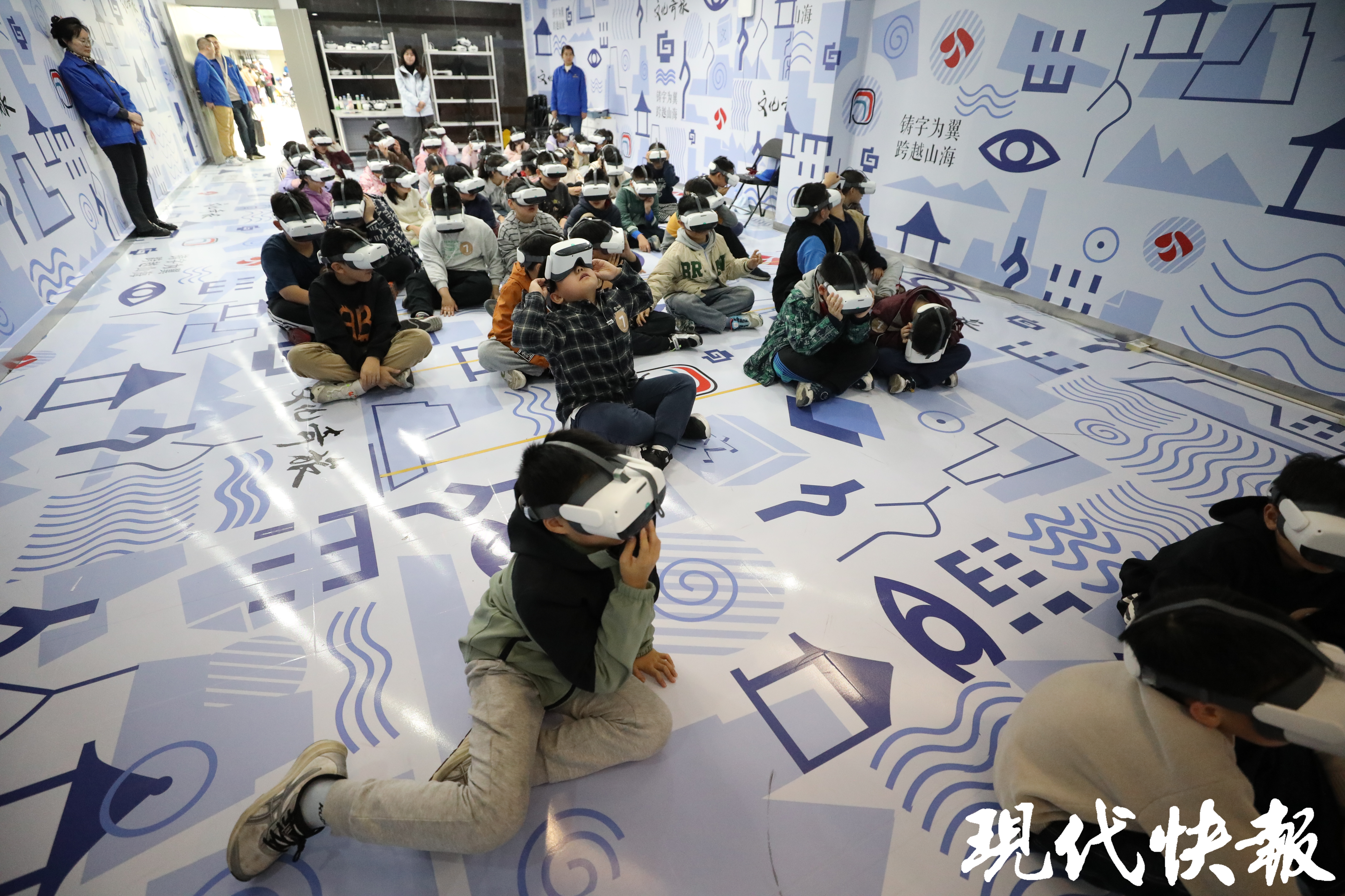 在VR沉浸式体验馆,同学们戴上VR眼镜,跟随卡通导游“凤小凰”穿越时空——与孔子吟诗、同孟子论道,乘上灵龟探秘水下古城……这段精彩的VR探源文化体验,引得同学们欢呼声、惊叹声此起彼伏。五(10)班王艺柯同学兴奋地告诉现代快报记者,“我有一种飞出太空的感觉,太神奇了!”一旁的董宸铭同学也补充道,“我记得里面的诗句,有‘富贵不能淫,贫贱不能移’,还有好多诗句。”五(2)班叶璟宸同学摘下眼镜,连连说:“好玩好玩!我们在竹筏上看到了好多古代的大文豪,我感觉他们就在我眼前,和我对话。”“后来我们还乘着热气球,我感觉飞了起来,看到了很多有趣的景象。”五(11)班陆锦怡同学也对这趟VR奇幻之旅印象深刻,回味无穷。