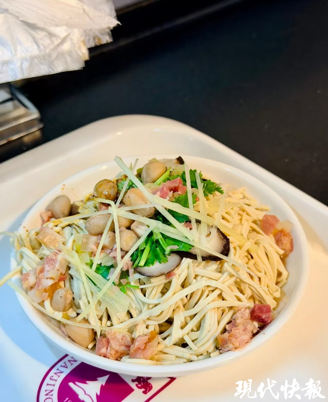因推出泰州早茶大受欢迎,近日南大后勤宣布,南大仙林校区六食堂将长期供应泰州早茶。“首推五味烫干丝和鱼汤面,味道很棒。”网名为“炸鸡馒头!”的南大学生告诉记者,他已经品尝和亲测过口味,也在社交平台连续分享了多篇泰州早茶的美食笔记。据他介绍,南大仙林校区六食堂的泰州早茶此前邀请了泰州宾馆的早茶大厨来指导食堂师傅制作,目前不知道“冠军套餐”还有没有供应,但是泰州早茶常驻食堂后,日常有12元的套餐,供应时间是早上7点到下午1点,套餐里面包含了五味烫干丝、鱼汤面/干拌面和鲜肉包/萝卜丝包,一份套餐就能吃到撑。