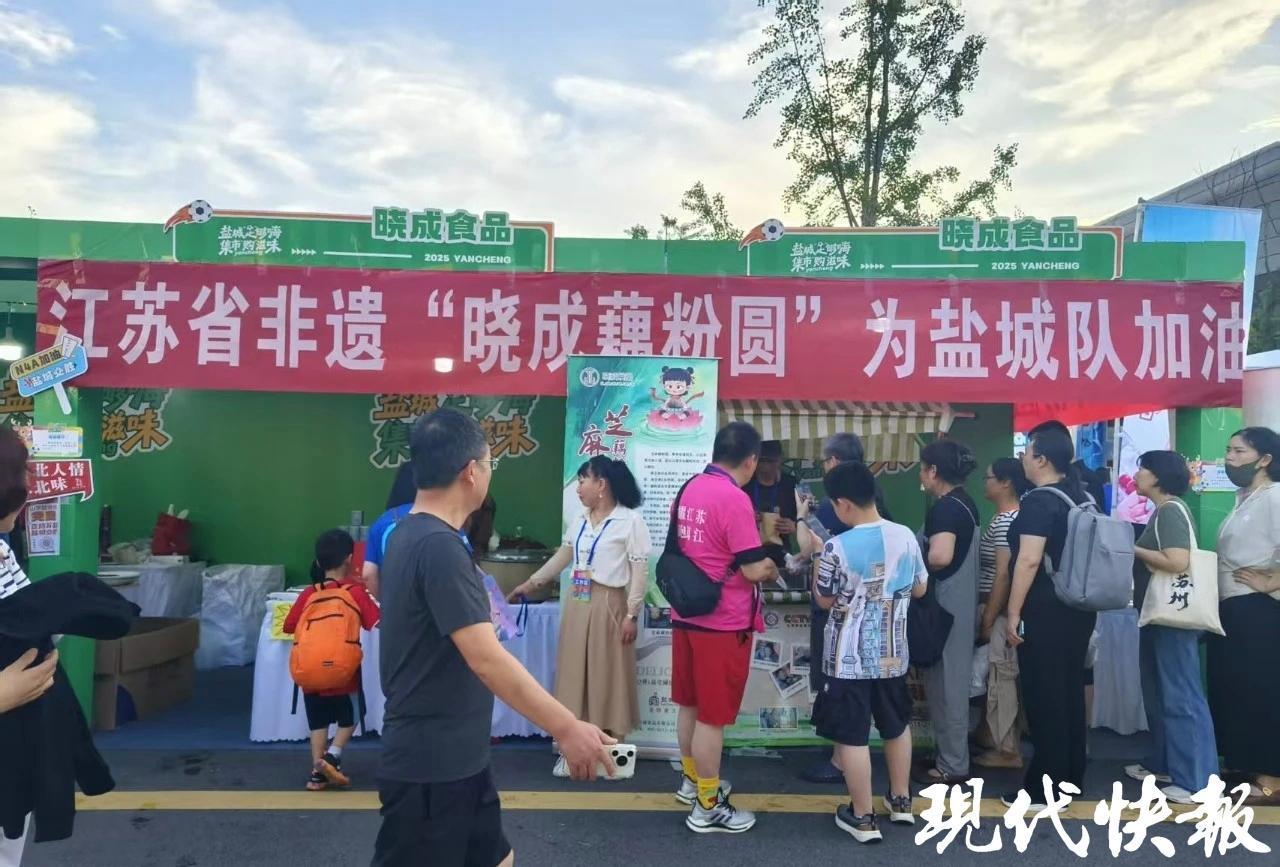 今年的苏超赛场上,不仅盐城队表现颇为亮眼,盐城特色美食藕粉圆等也是闪耀现场。