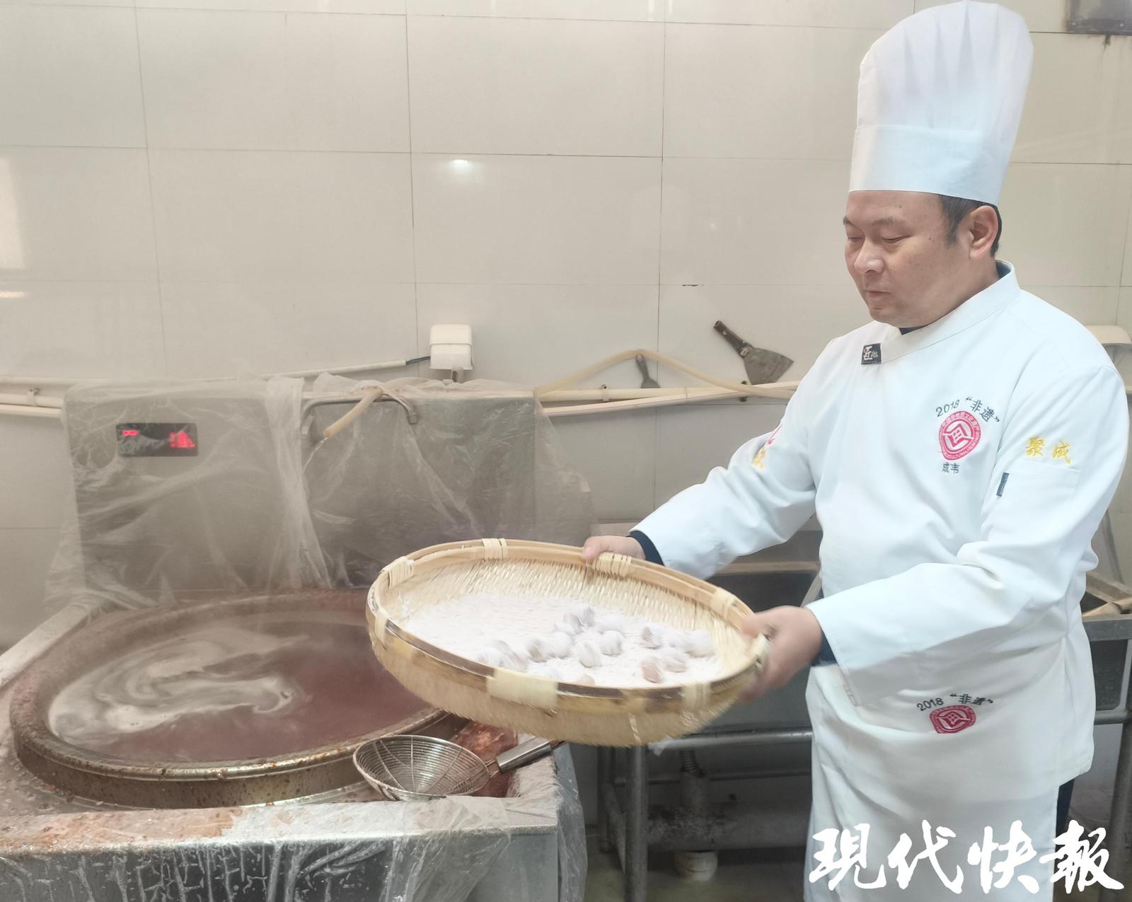 “这个制作过程十分讲究,每一个藕粉圆都要‘汆’六遍,每次烫制时间为三秒,不能长也不能短,这样制作出来的藕粉圆子才爽滑细腻,Q弹有嚼劲。”成韦介绍。