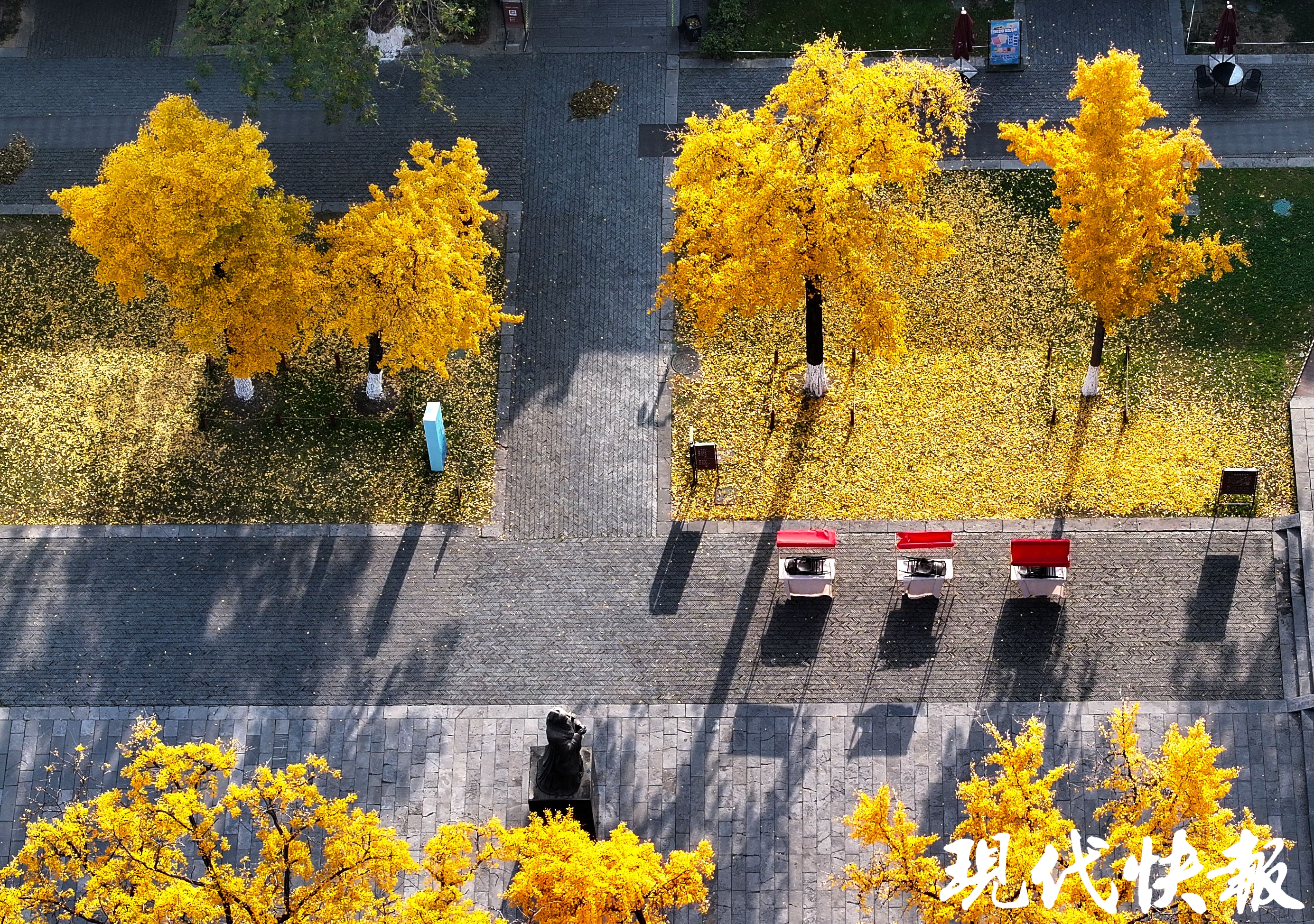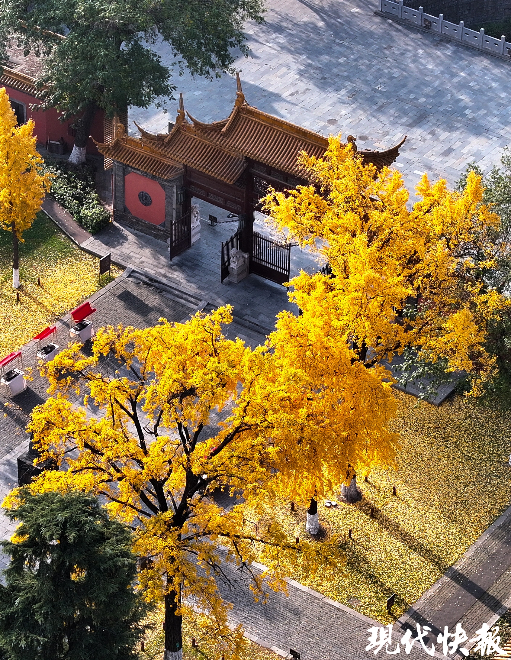 现代快报讯(记者 卢河燕/文 赵杰/摄)红墙、古殿,当金陵的风染黄第一片银杏叶,南京朝天宫就把千年时光,酿成了金色的梦。
