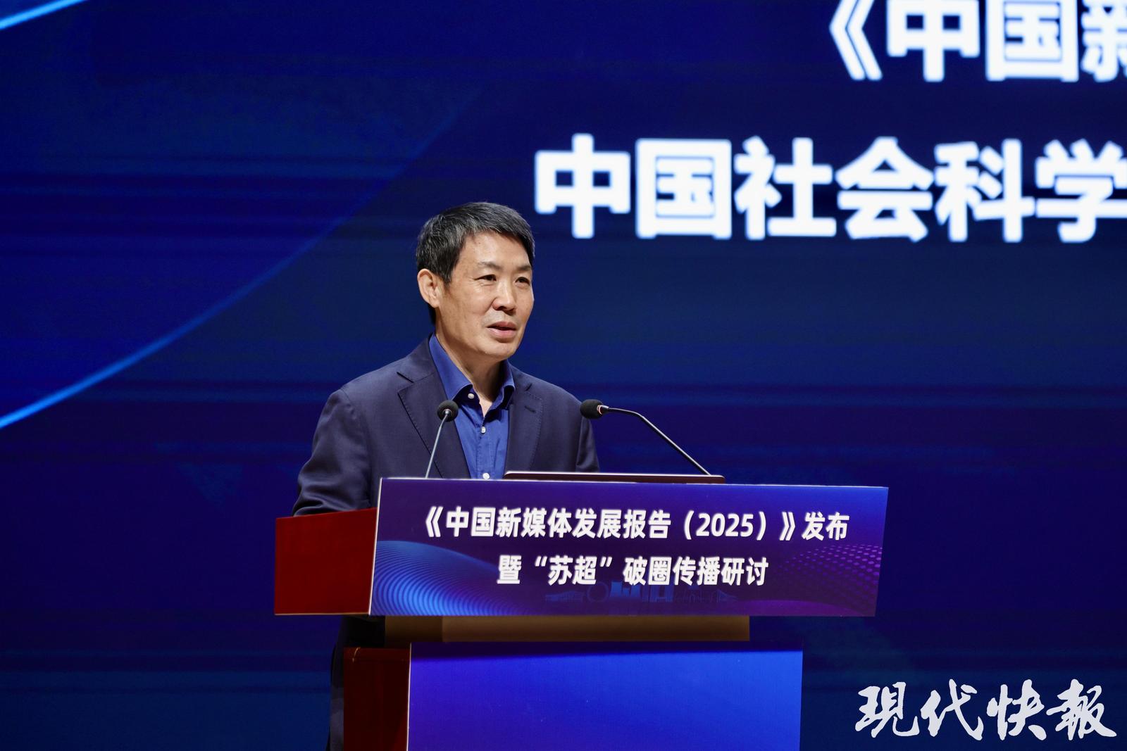 凤凰出版传媒集团副总经理、现代快报社社长屠法在致辞中表示,凤凰出版传媒集团、现代快报与中国社会科学院新闻研究所连续5年共同见证《中国新媒体发展报告》的发布,探讨技术发展浪潮下如何塑造主流舆论新格局的重大命题。近年来,现代快报坚持“新闻+文化”战略定位持续探索创新,走出了一条特色鲜明的媒体融合之路。今年,现代快报围绕抗战胜利80周年、党的二十届四中全会、“文化中国行”等重要节点和重大主题,精心策划推出一批“正能量澎湃大流量”的报道精品。在“苏超”传播中,围绕赛事、文体旅商融合、网络热梗背后的历史文化等议题,创新创优报道形式,推出了一批高质量、大流量的现象级融媒体产品。