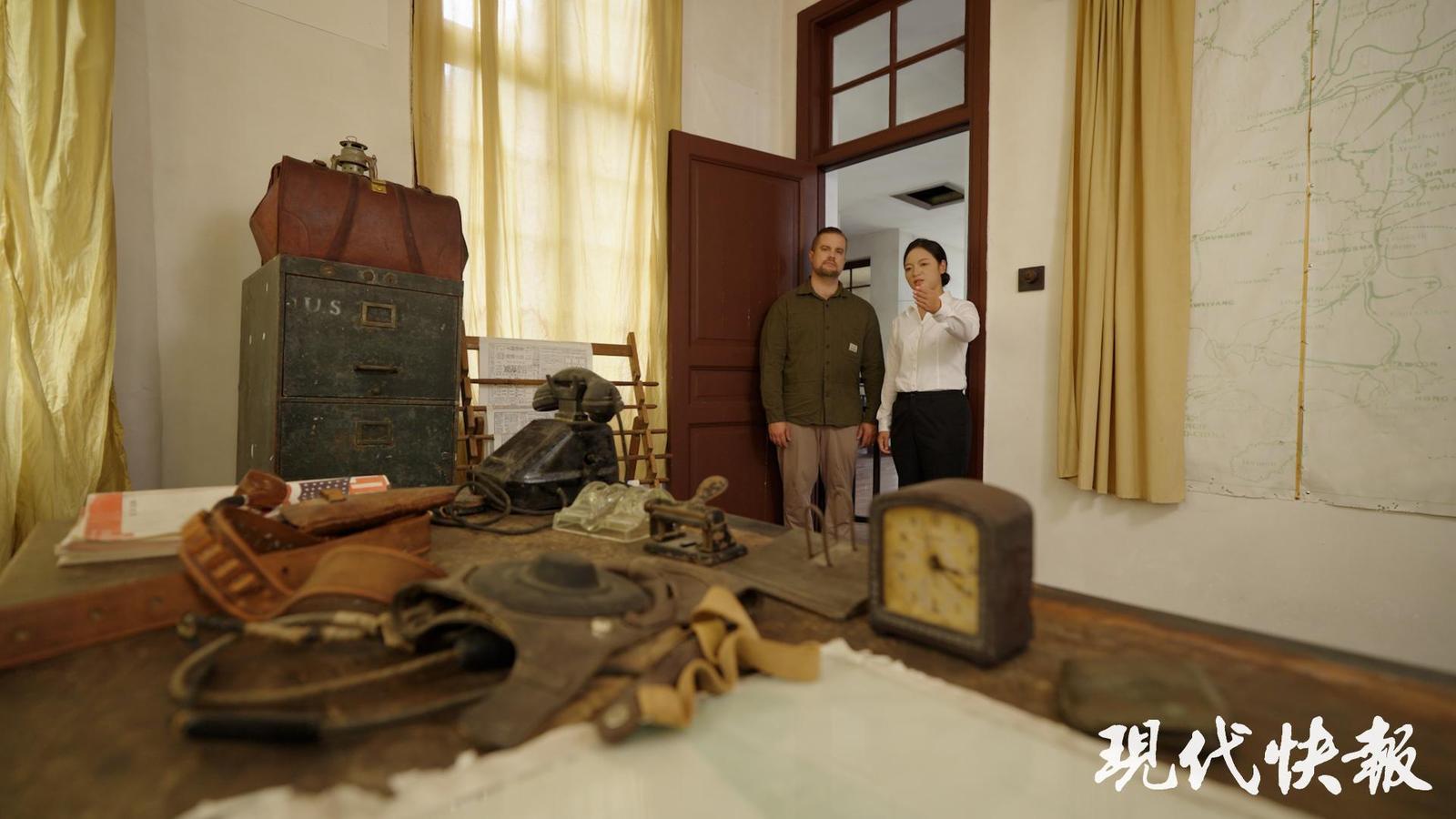 抗日战争期间,美国飞虎队指挥官陈纳德将军率领飞虎队与中国人民并肩作战。湖南芷江飞虎队纪念馆由中美空军指挥塔旧址、中美空军联队俱乐部旧址等七大展区组成。在中美空军指挥塔旧址,杨小银带领费建明重温那段战地记忆。“这栋小楼里有无线电指挥中心、发报中心、机要室、情报室、作战室、指挥室等等,陈纳德将军就曾在这里指挥过很多次战斗。”