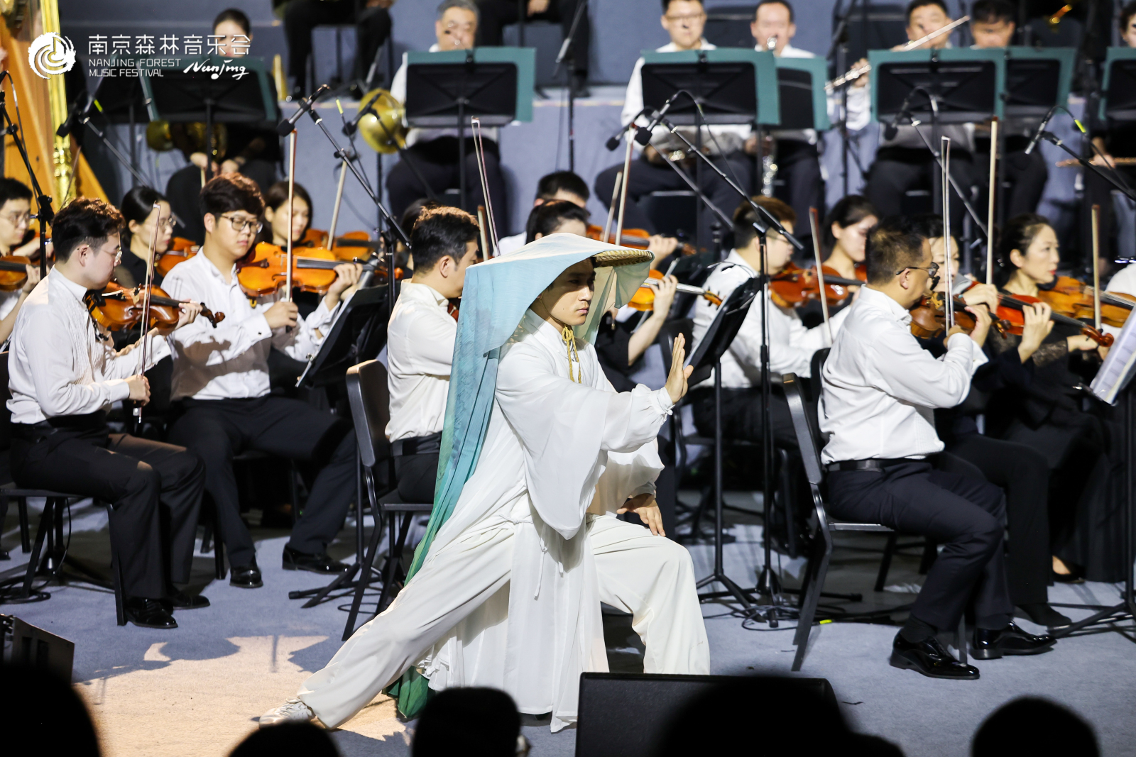 洪毅全原创的《功夫协奏曲》成为首个高潮,中国民歌基底的旋律与功夫表演者曹佳龙的招式韵律无缝衔接,刚劲的拳脚与灵动的音符在月光下“共舞”,诠释着“中西合璧”的艺术创新,也展示着东方美学的独特意蕴。