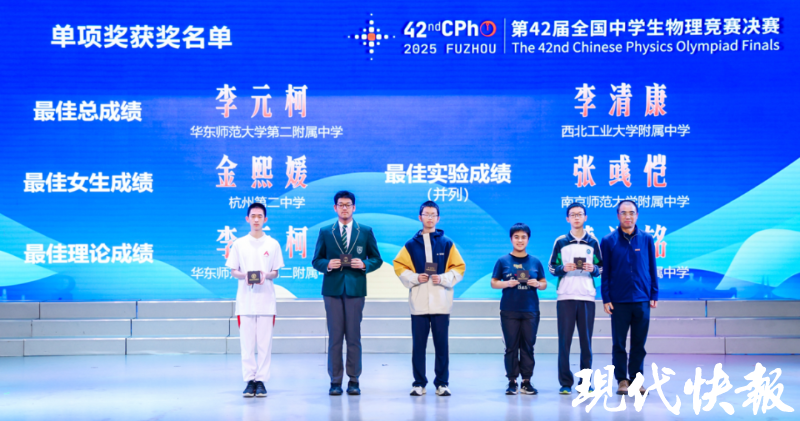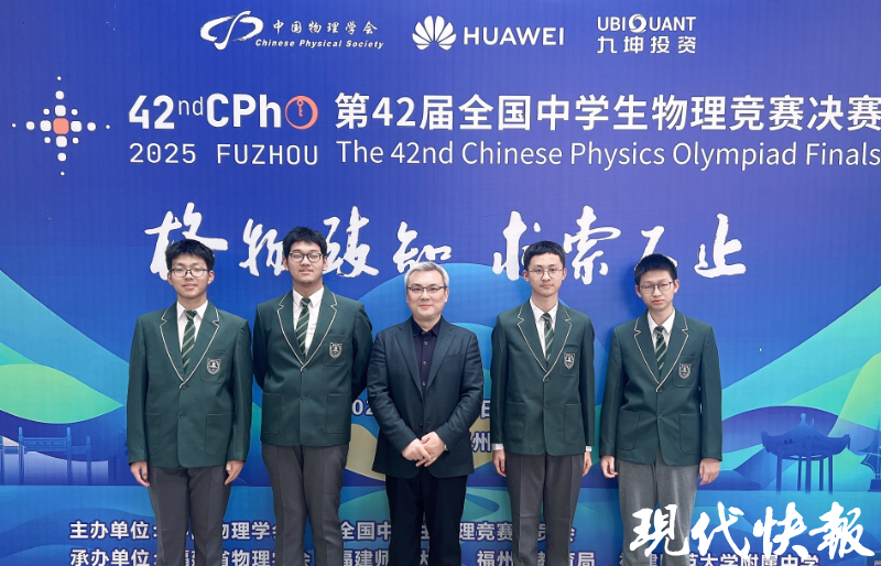 现代快报讯(记者 袁永红)近日,第42届全国中学生物理竞赛决赛在福州举行,来自全国的590名顶尖物理竞赛选手同场竞技。经过激烈角逐,南京师范大学附属中学入选江苏省代表队的12名学子,凭借扎实的学科素养与出色的临场发挥,取得亮点成绩:7名同学获得金牌,其中4名同学入选国家集训队,入选人数位列全国第一(并列);5名同学获得银牌。此外,张彧恺同学荣获“最佳实验成绩”单项奖。