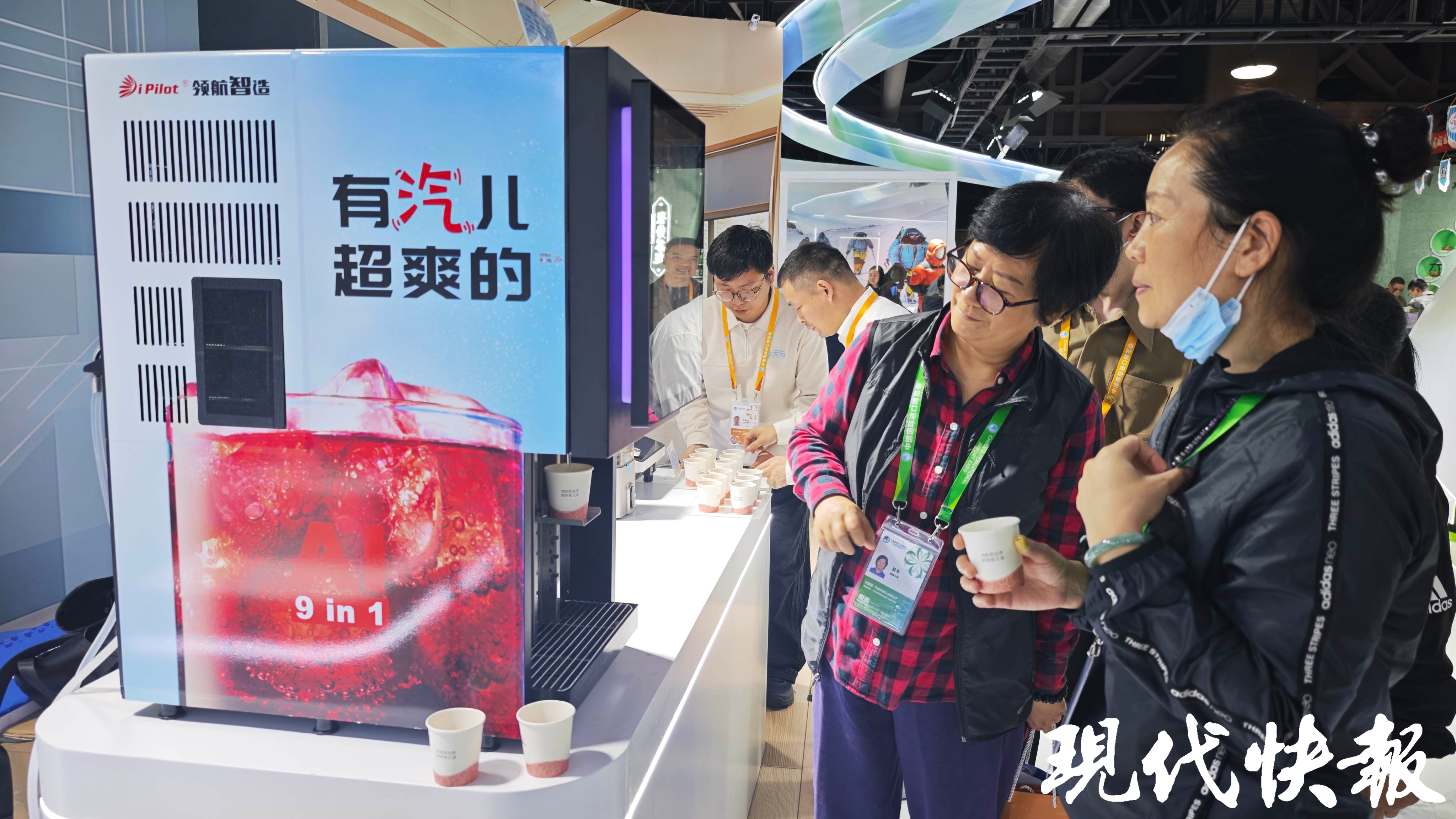 当科技重构生活场景。在进博会的舞台上,科技永远给人惊喜。云幕智造的皮肤双足机器人唐伯虎正在与观众互动,这个能精准模仿人类表情的机器人,将在多个文旅景区担任“智能导游”。更贴近生活的科技创新同样引人注目,宇宙行者专为养宠家庭设计的空气净化器,能精准捕捉宠物毛发和异味;连云港神鹰的碳纤维电助力自行车轻到可单手提举,却拥有续航80公里的强劲动力。常州领航智造的AI气泡微醺饮料机公司精准捕捉Z世代的多元消费场景,服务更多餐饮企业。