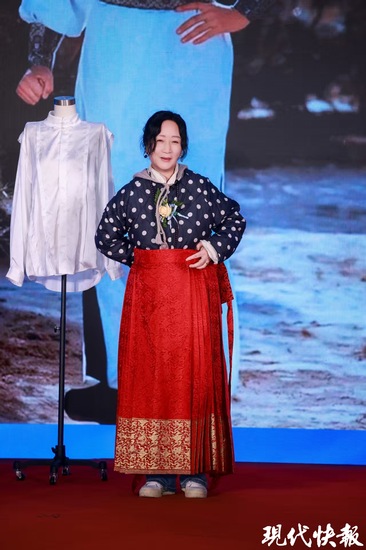 活动现场,87版《红楼梦》中“香菱”扮演者陈剑月、“柳湘莲”扮演者侯长荣登台互动,现场甄别并试穿复刻版云锦织造技艺的“石榴红绫裙”。陈剑月动情回忆:“当年戏服上的云锦纹样让角色瞬间鲜活,尤其是香菱的裙子,暗含‘命运如榴花易逝’的隐喻。”侯长荣则笑称:“柳湘莲的云锦箭衣飘逸如仙,穿上后连走路都自带侠气。”