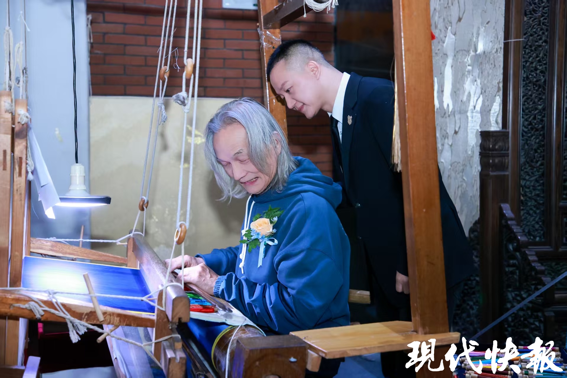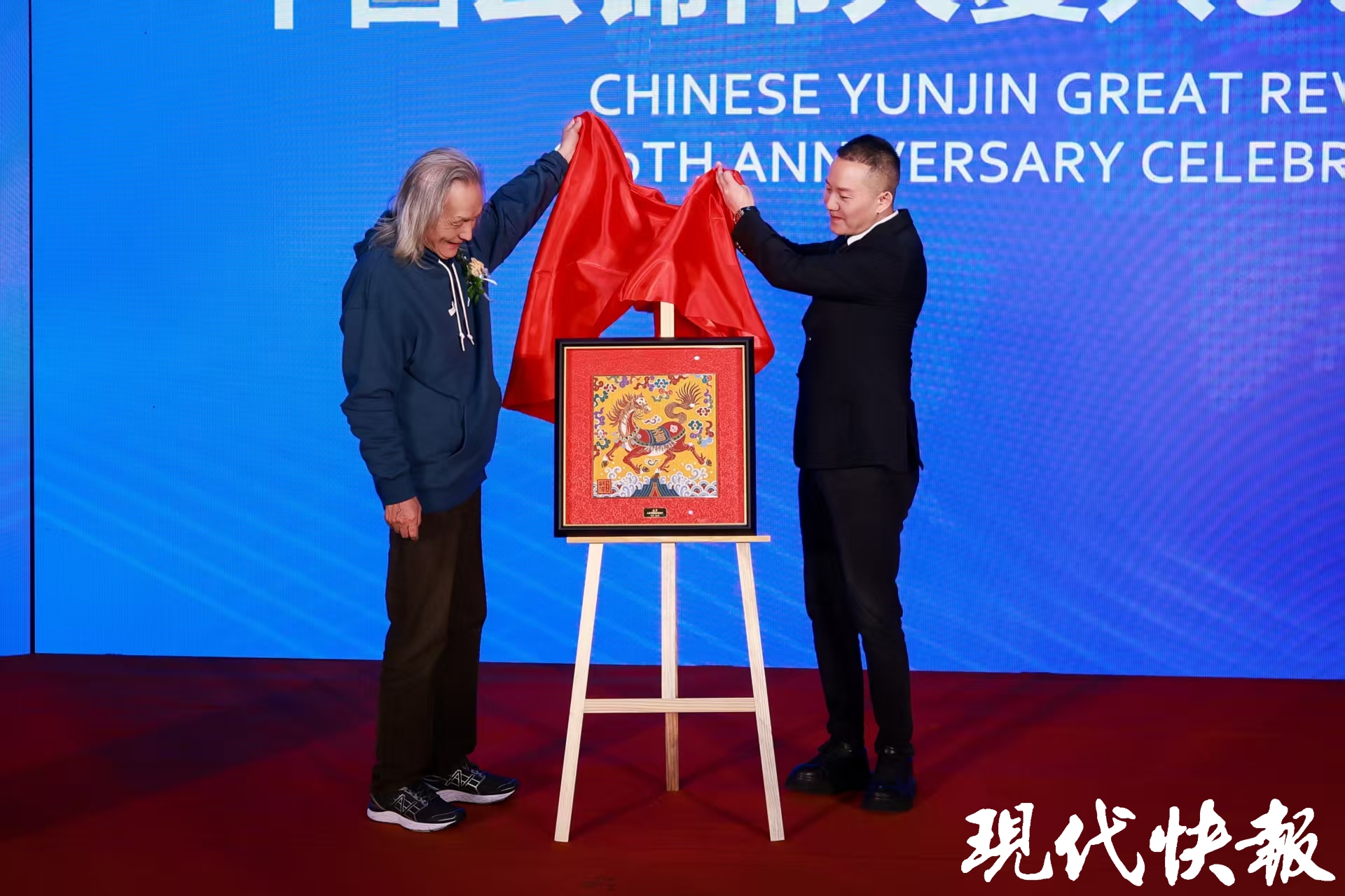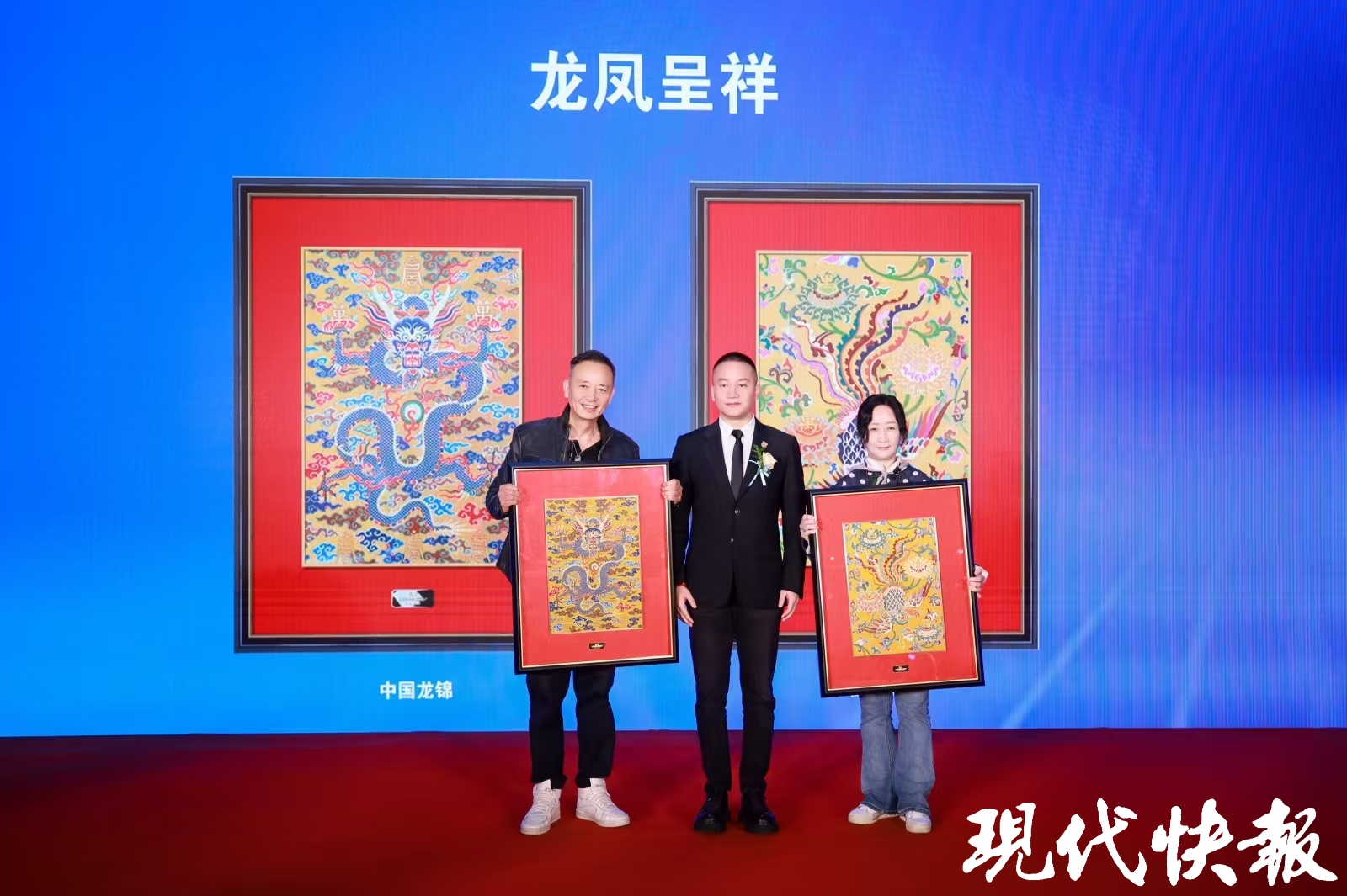 盛典的另一重头戏,是向为云锦奉献一生的守护者们致敬。现场,国家级传承人郭俊与省级传承人杨玉柱携新作《马上大吉》《祥麟天下》揭幕,以传统纹样融合现代审美,展现“寸锦寸金”的匠心独运。郭俊在访谈中表示:“一匹妆花云锦需要匠人数月手工织造,仅挑花结本工序就要操作数万次,两个熟练的匠人配合一天只能织4—5厘米,至今无法被机器取代。”