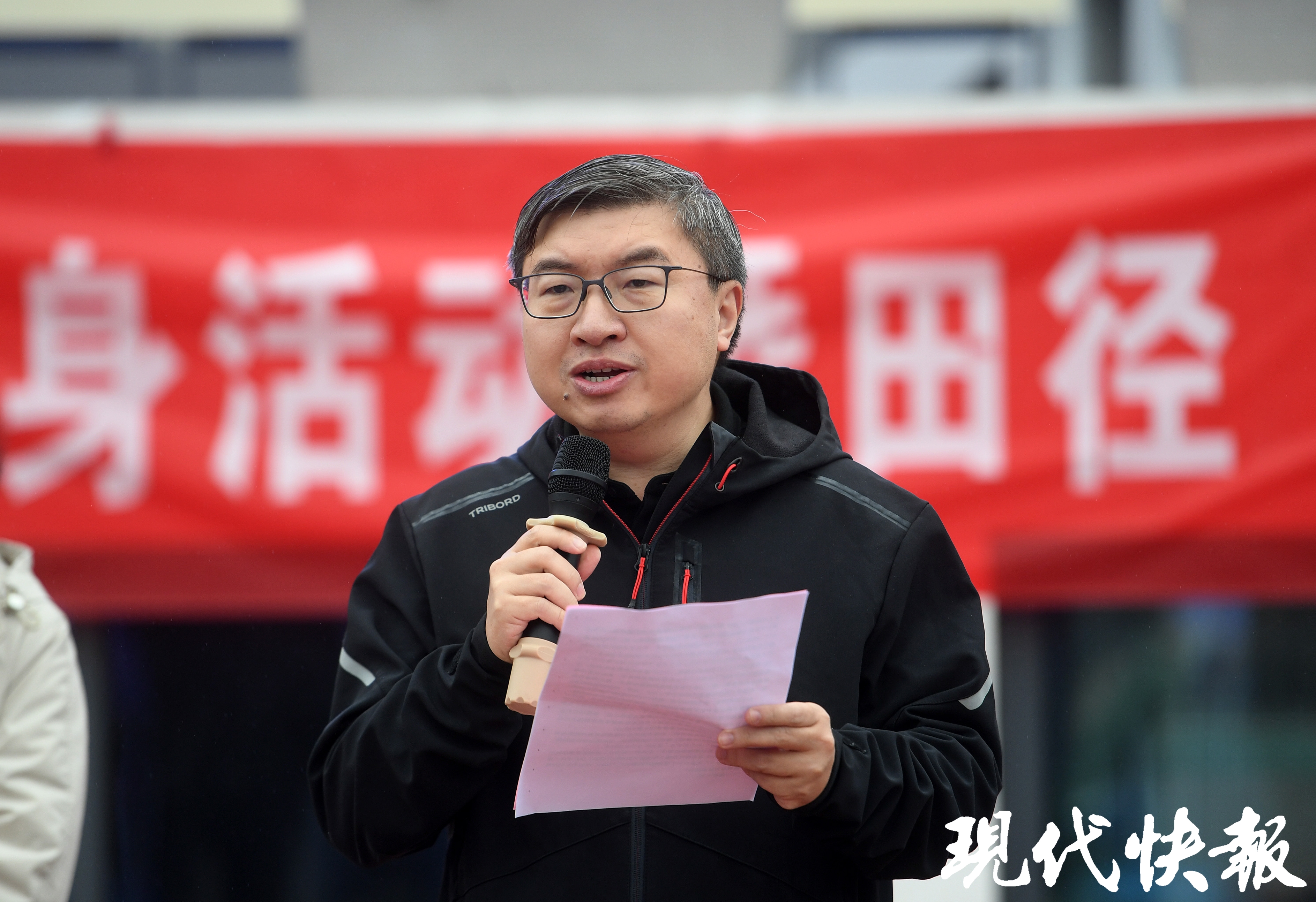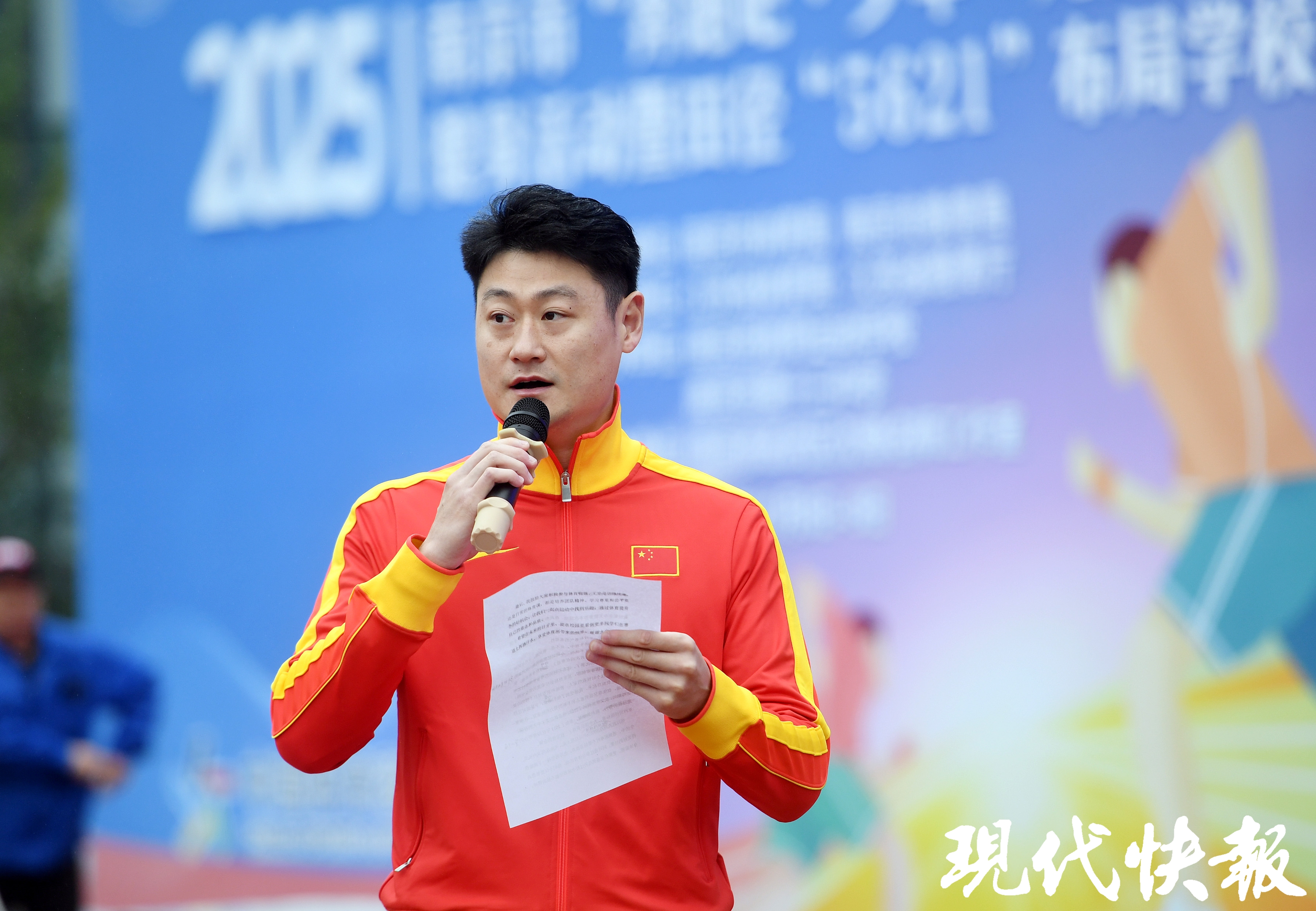 11月9日上午,活动开幕式在庄严热烈的氛围中举行。南京市、区体育和教育部门相关领导及承办学校领导出席仪式。南京市第十三中学党委书记、校长张翼飞致开幕词。他说,体育是教育的重要组成部分,学校将持续发挥体育育人功能,助力青少年健康成长。亚洲田径锦标赛男子110米栏冠军江帆作为本次活动特邀嘉宾寄语,他鼓励小运动员们勇敢追逐梦想,在赛场上绽放风采。他说,自己的运动生涯并不是一帆风顺,多年积累的伤病几乎让他无法再次站在跑道上。但他的家人、教练和朋友却在不停地给他打气,让他振作起来。在逆境中,他参加了亚洲田径锦标赛,为中国队获得了一枚宝贵的金牌。他希望用自己的经历可以启发大家,无论是在学习中还是在生活中遇到困难时,不要轻言放弃,也许再坚持一下,你就能获得更好的结果。