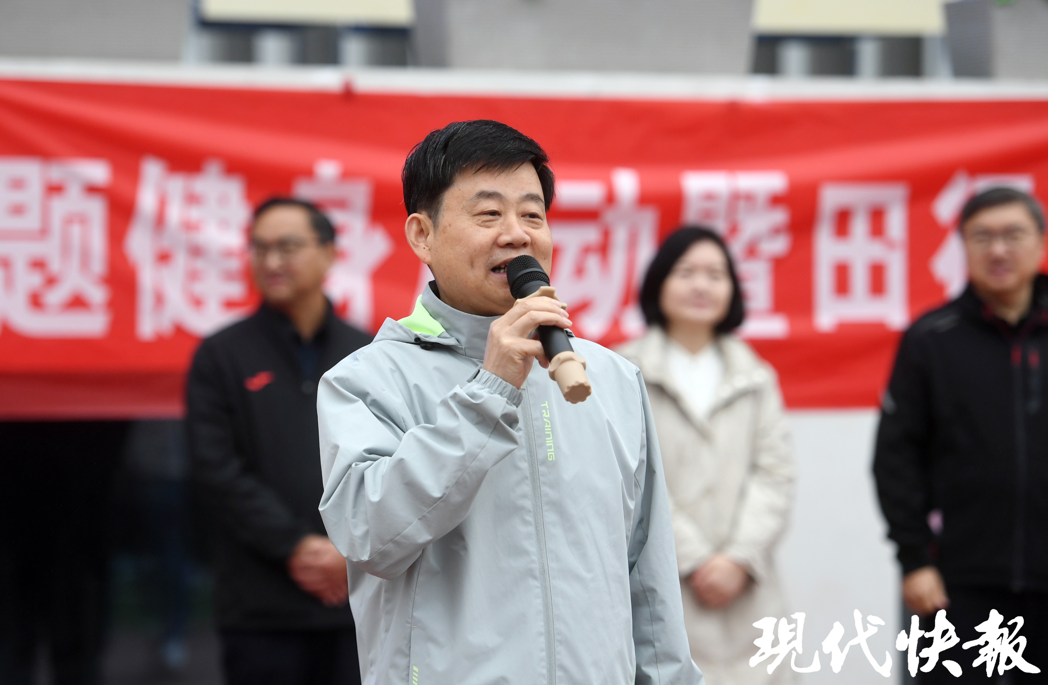 南京市第十三中学啦啦操队做暖场表演,以活力四射的演出点燃全场,展现了南京青少年蓬勃向上的精神风貌。最后,南京市教育局一级调研员卢普新宣布活动开幕。