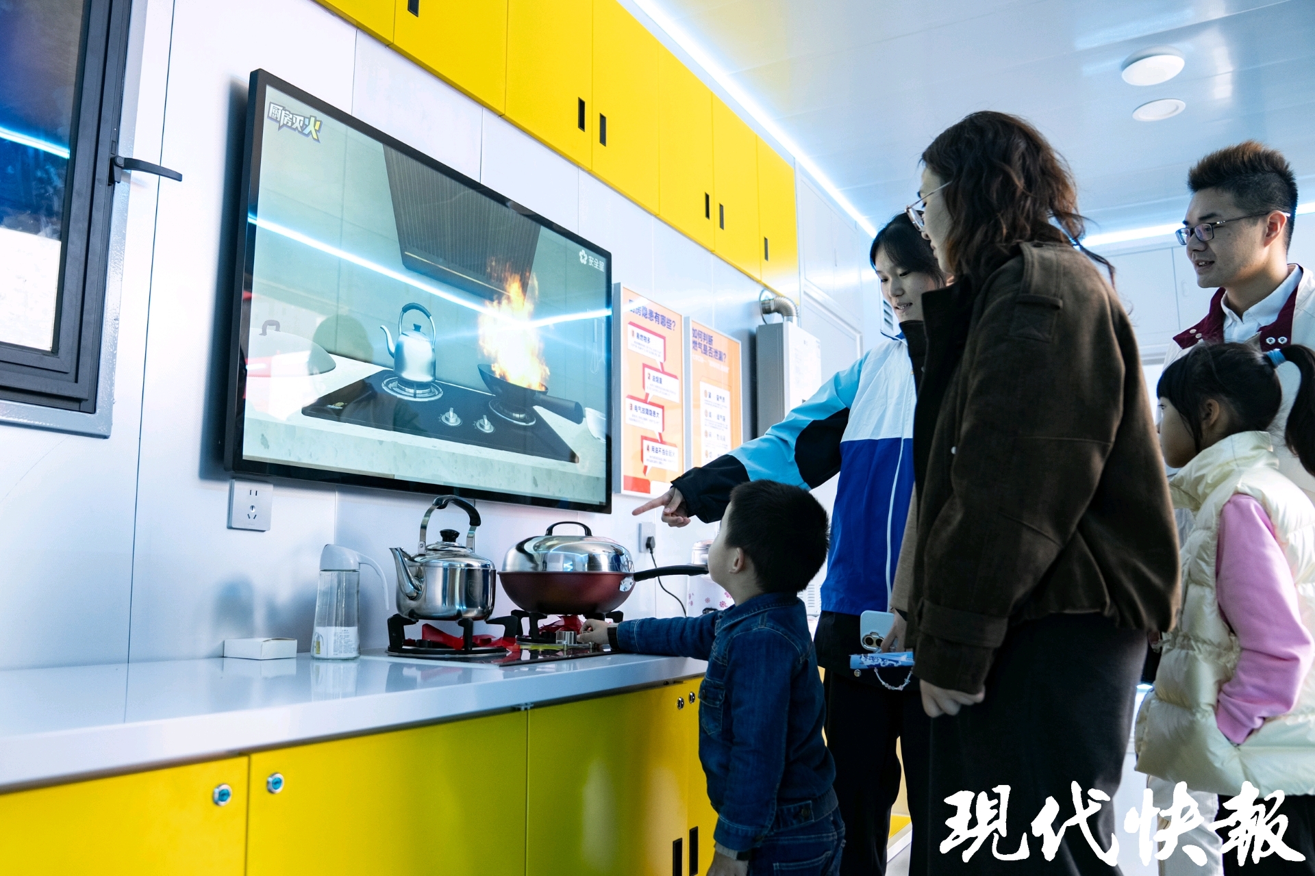 科普教育区内,残骸展示、高层住宅火灾烟气模拟装置,通过实物与模拟场景结合的方式,向市民直观呈现火灾危害,敲响安全警钟;安全用火用电小课堂上,消防宣传员配合视频和实验装置,向大家科普家庭消防安全知识;现场还演示了灭火毯、逃生面罩等家庭应急救援器材的使用方法,传递家庭防火必备技能。