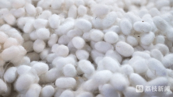 鑫缘集团饲料养蚕项目部技术负责人顾圩杰介绍,集团自主研发的饲料,包含桑叶粉、豆粕、玉米以及蚕所需要的一些微量元素,说的简单通俗一点,蚕不吃桑叶了,改为吃“饼干”。
