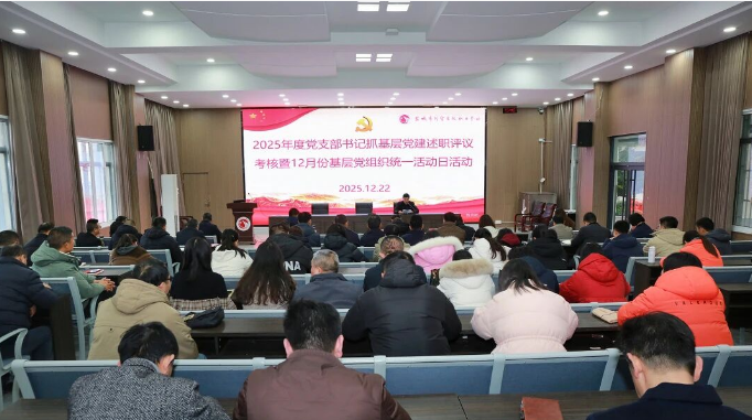 12月22日下午,盐城市经贸高级职业学校召开2025年度党支部书记抓基层党建述职评议考核暨12月份基层党组织统一活动日活动。学校领导班子成员、各党支部书记及委员、全体党员同志、中层干部齐聚一堂,共同参与此次党建工作“年度检阅”。会议由党委副书记、校长李金松主持。