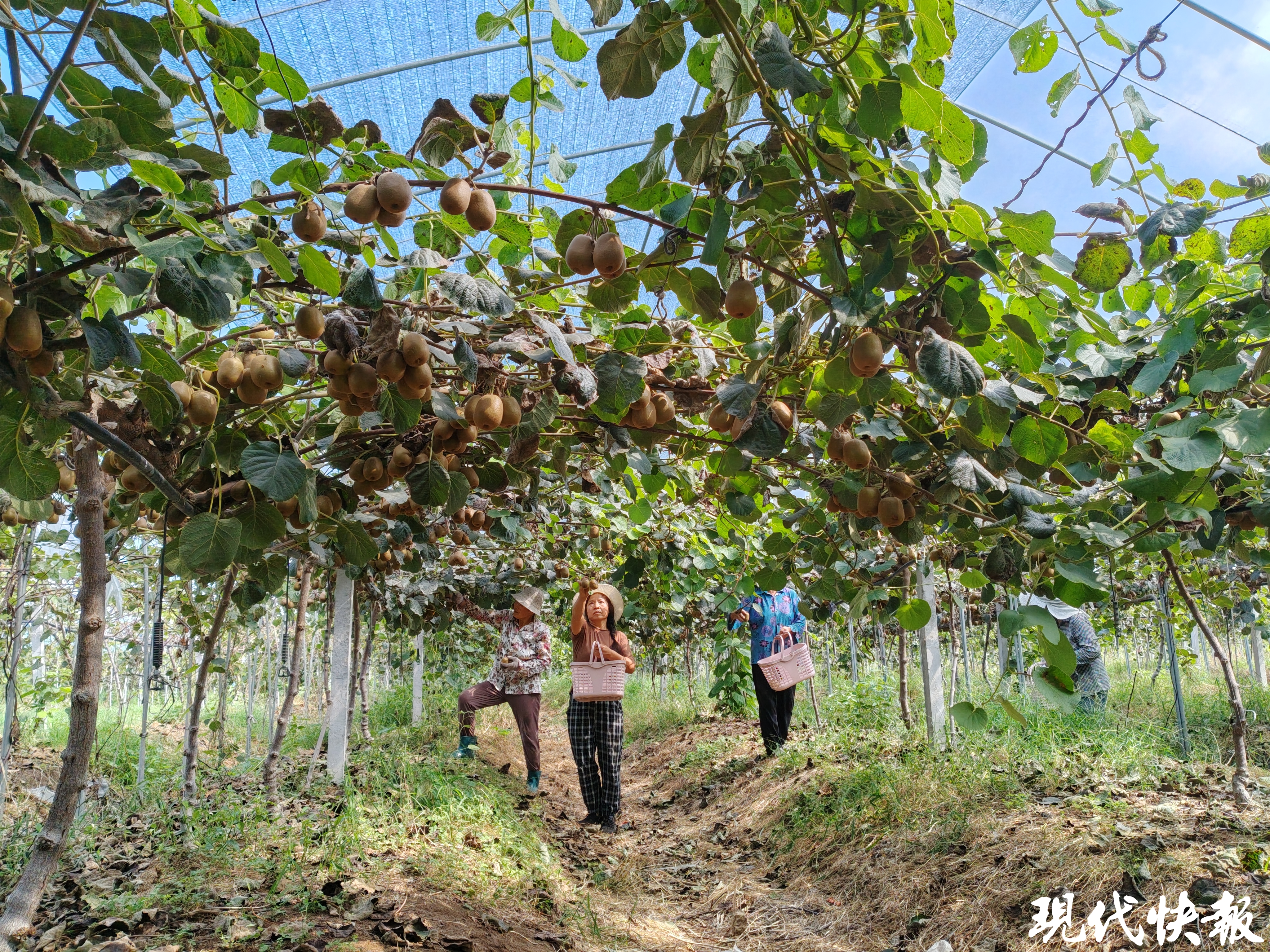 位于新沂市港头镇的蜜满园家庭农场,百亩猕猴桃近期进入了采收季。适逢周末,一些家长带着孩子们来到农场里体验采摘猕猴桃的乐趣。