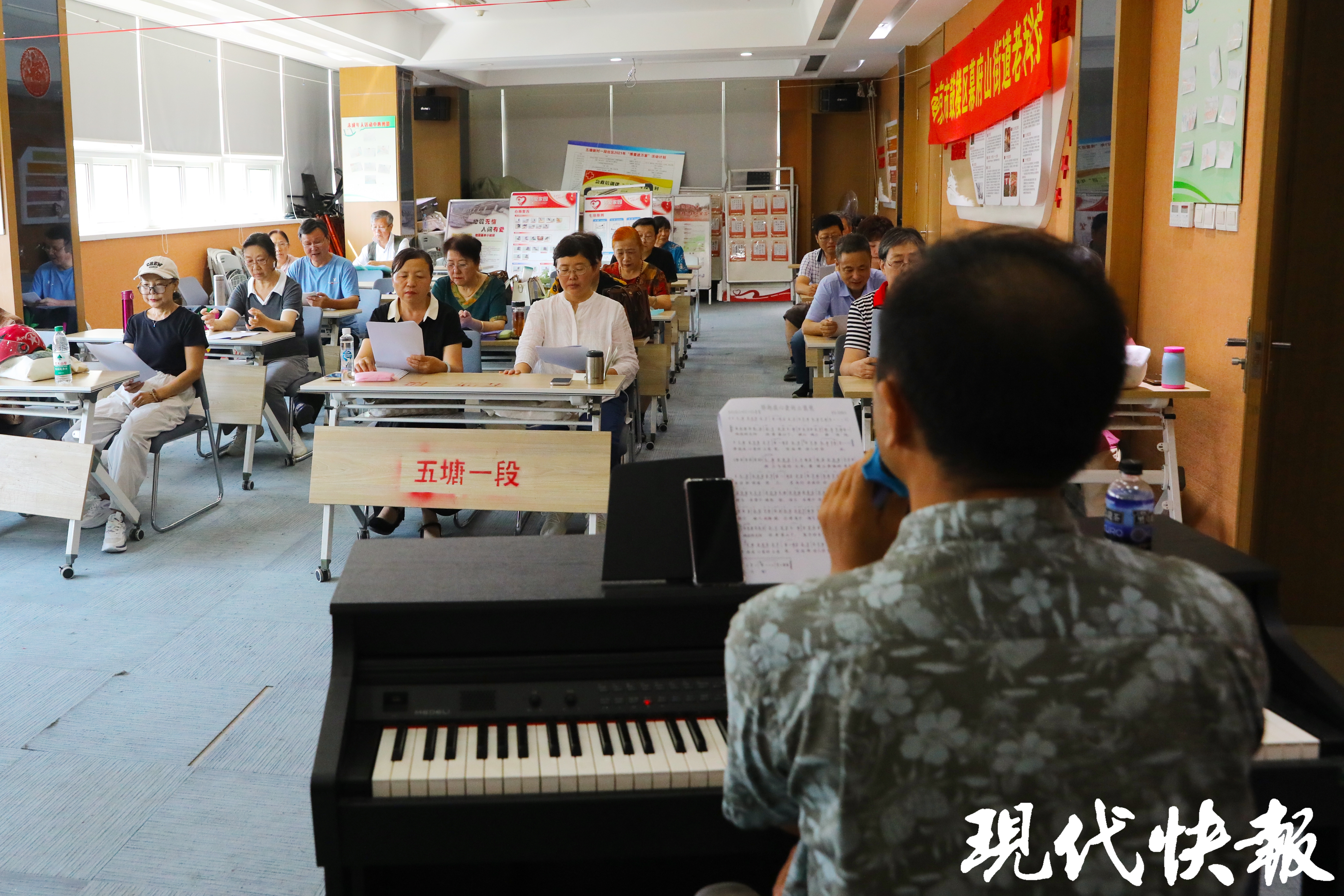 清晨,在五塘新村一段社区,悠扬的歌声从教室传出。在老师的带领下,大家用歌声开启元气满满的一天。“我们老年人,就盼着开学这一天!和大家一起唱唱歌,心情会变得特别舒畅。”声乐班的周阿姨一边看着歌谱一边笑着说。在她身旁,学员们早已就座,在老师的钢琴伴奏下,进行着开嗓练习,嘹亮的歌声瞬间充满了整个教室。