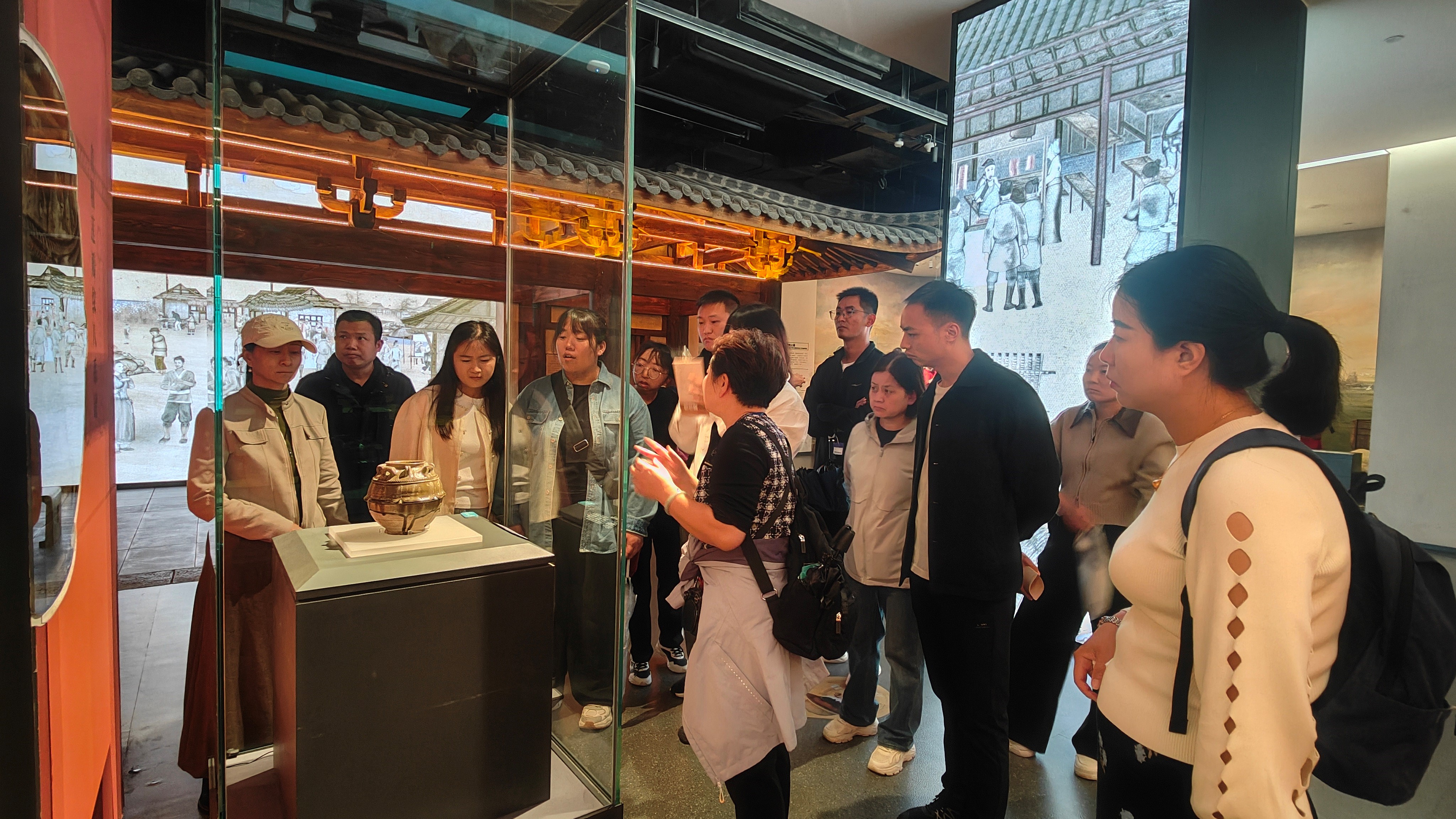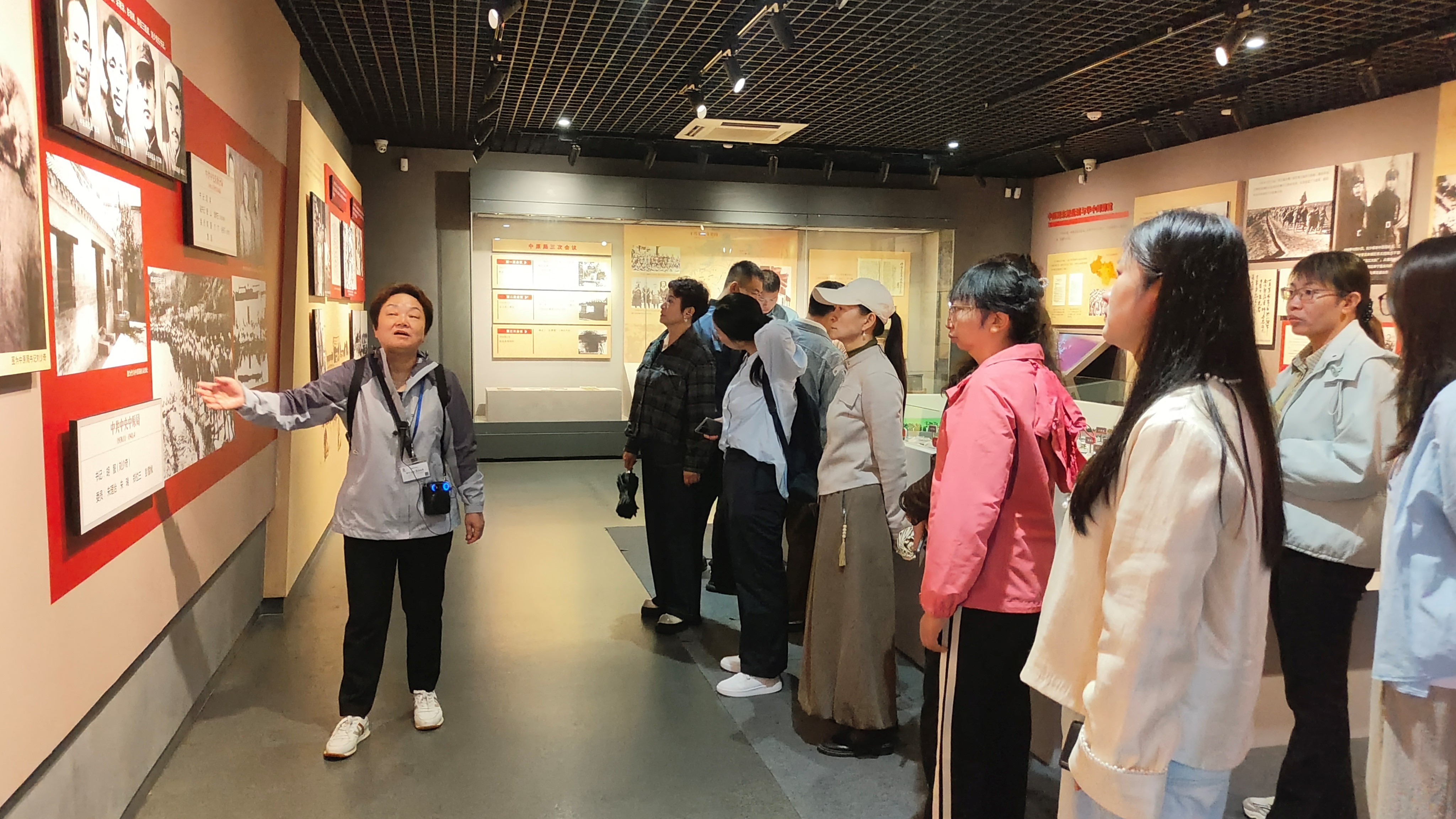 随后,学员们前往盐城市博物馆,开启地域文化探源之旅。在众多展区中,“红色盐城”板块格外引人关注。通过详实的史料、生动的场景复原和讲解员的细致解读,大家不仅系统梳理了盐城从古代到近现代的历史脉络,更深入了解到在中国共产党领导下,红色文化如何在盐城生根发芽,以及铁军精神如何融入城市血脉,塑造出独特的地域文化品格。