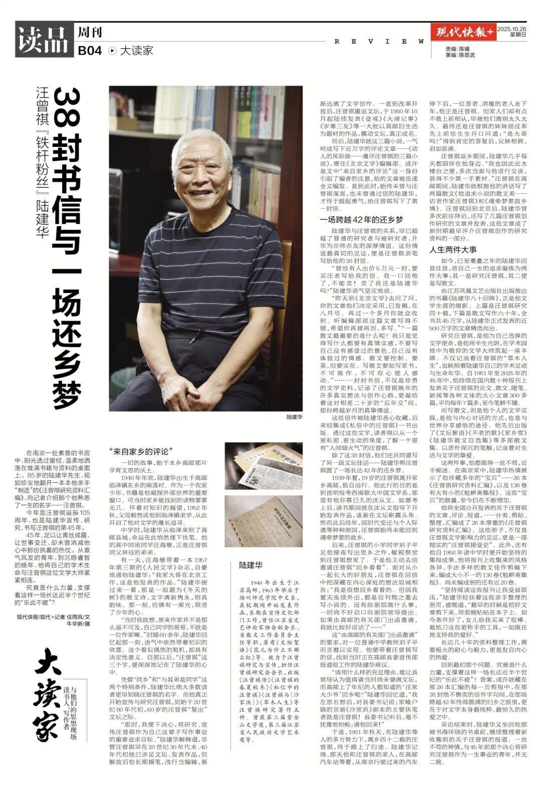 今年是汪曾祺诞辰105周年,也是陆建华宣传、研究、书写汪曾祺的第45年。