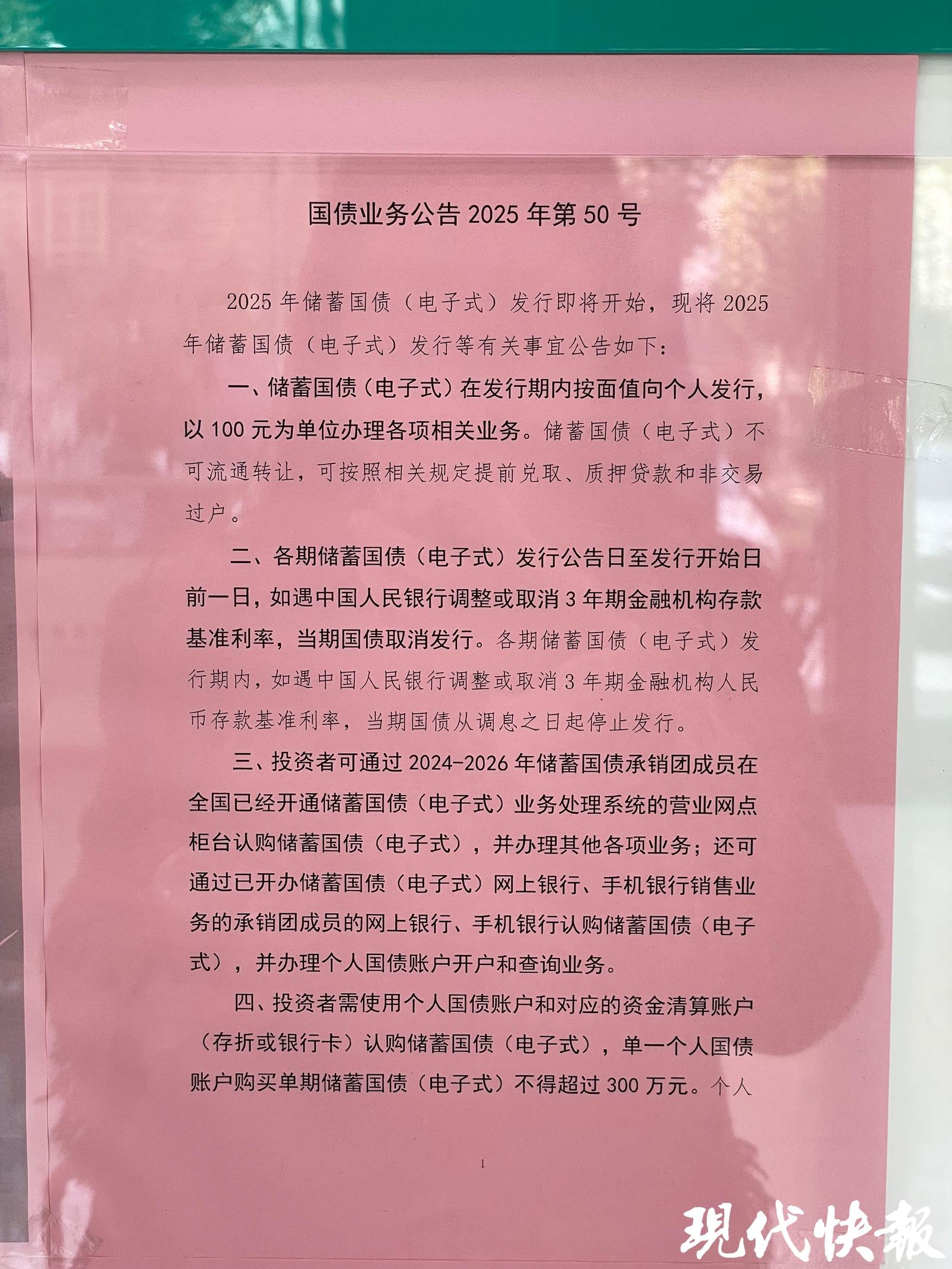 对于仍有投资需求的市民,银行工作人员提醒,三年期储蓄国债(电子式)剩余额度可通过线上线下渠道继续认购,投资者可登录承销银行APP或前往就近网点咨询办理。作为2025年最后两期电子式储蓄国债,本次发行结束后,投资者需等待2026年新一期储蓄国债发行公告,建议关注财政部及各大承销银行的官方通知,合理规划资金配置。