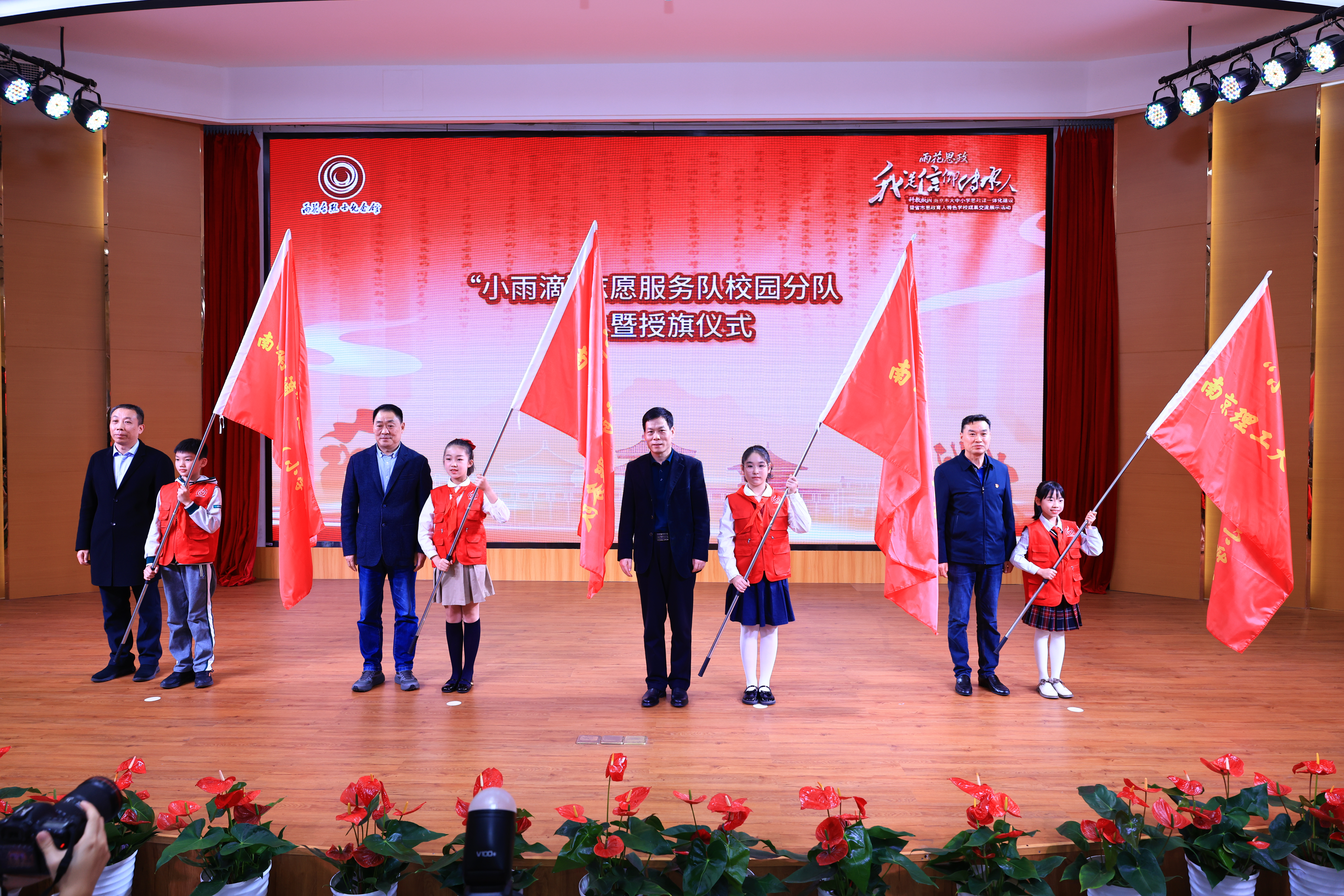 当天,玄武区、秦淮区、鼓楼区、栖霞区联合组建的“小雨滴”志愿服务队校园分队以及南京理工大学实验小学“成贻宾中队”分别成立,各区学校代表接过队旗,共同发出倡议“让我们即刻行动,无愧于‘强国一代’的使命担当”,铿锵有力的誓言道出了新时代青少年的责任担当。