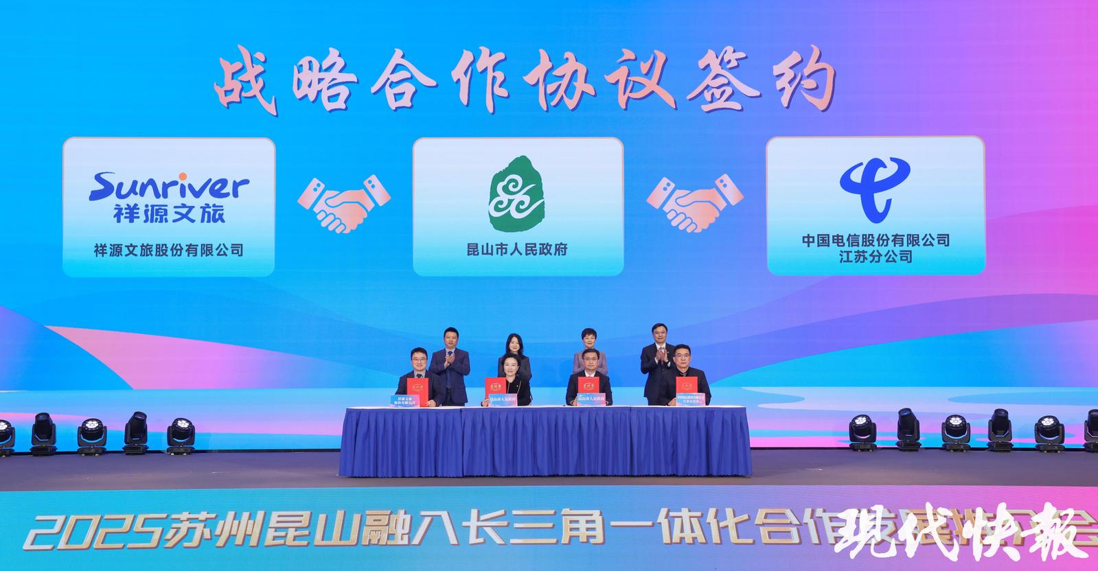 当天,昆山与上港集团、苏州港管委会、中国电信江苏分公司、祥源文旅、上海银行、浦发银行、上海农商行等签署了战略合作协议。民生服务、头部机构、头部资本、现代文旅四大类28个沪昆合作项目同步签约。