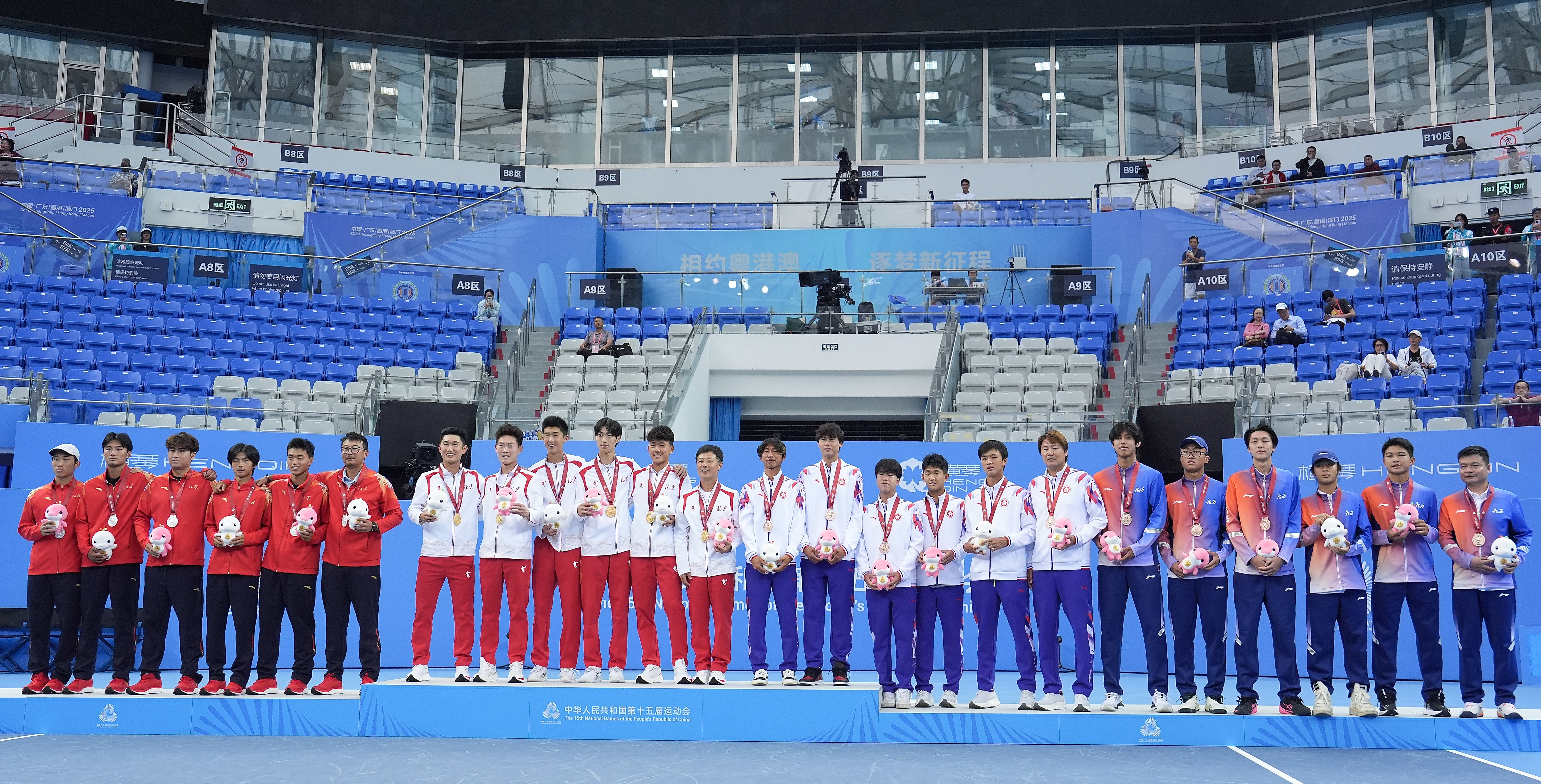 现代快报讯(记者 王卫)11月12日,第十五届全运会网球青年组男子团体决赛在广东省横琴国际网球中心举行。以徐旷清、胡佳、梁亮、唐锦鹏、陈显峰组成的江苏队1:2不敌北京队,获得银牌。