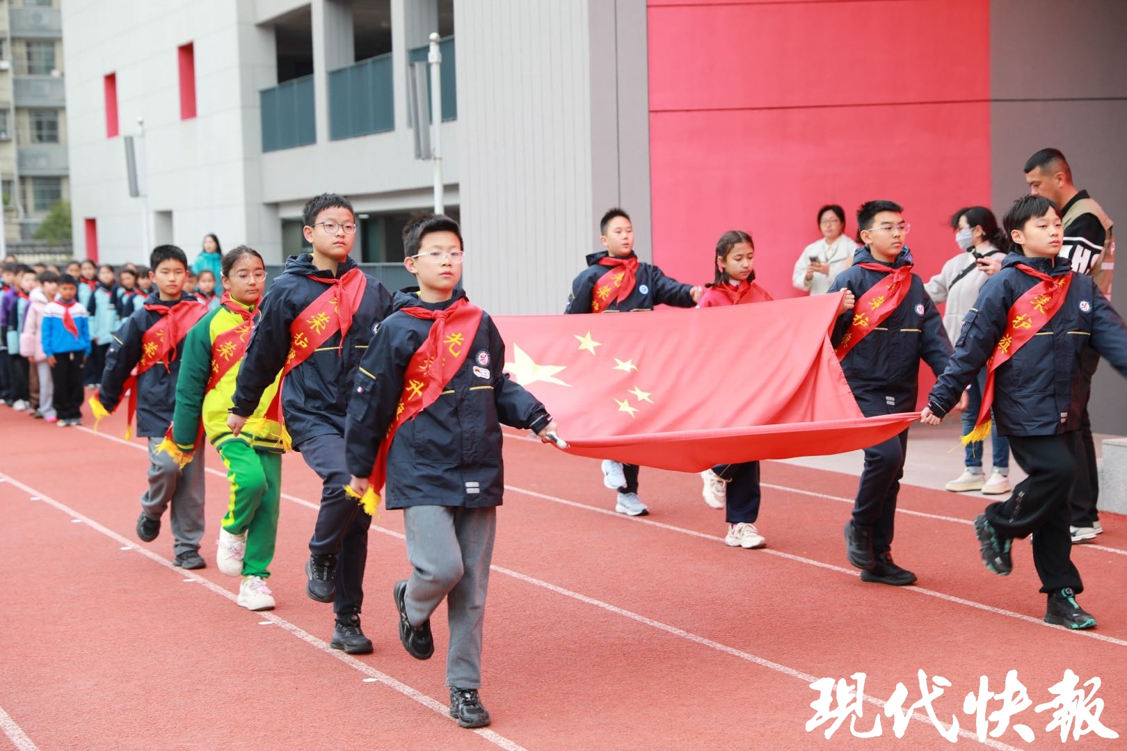 当天恰逢周一,江苏和新疆两地的小朋友,在南京市中央路小学的校园里,共同举行升旗仪式。现场,2025年苏·克“石榴籽一家亲”青少年插班融情营开营。