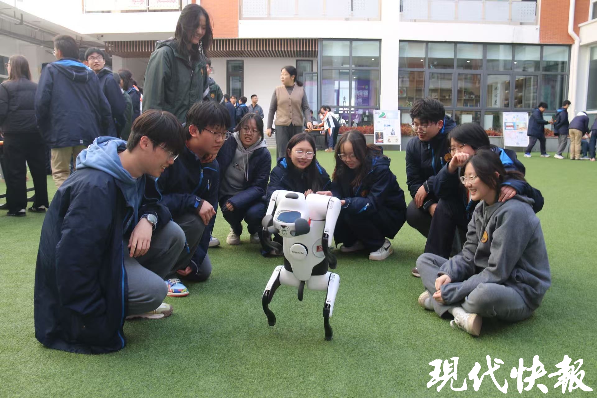 澳洲精英课程班10年级C班的王紫煜同学首次操作机器狗,她通过设备内置的动作指令,指挥机器狗站立、跳舞、倒立、转圈等,她告诉现代快报记者:“特别有趣,好玩!操作界面直观易懂,我第一次玩,很轻松就操作起来了。这次的科技节让我体验到很多新奇事物,同时在小组合作中,体会到团队协作的重要性。”