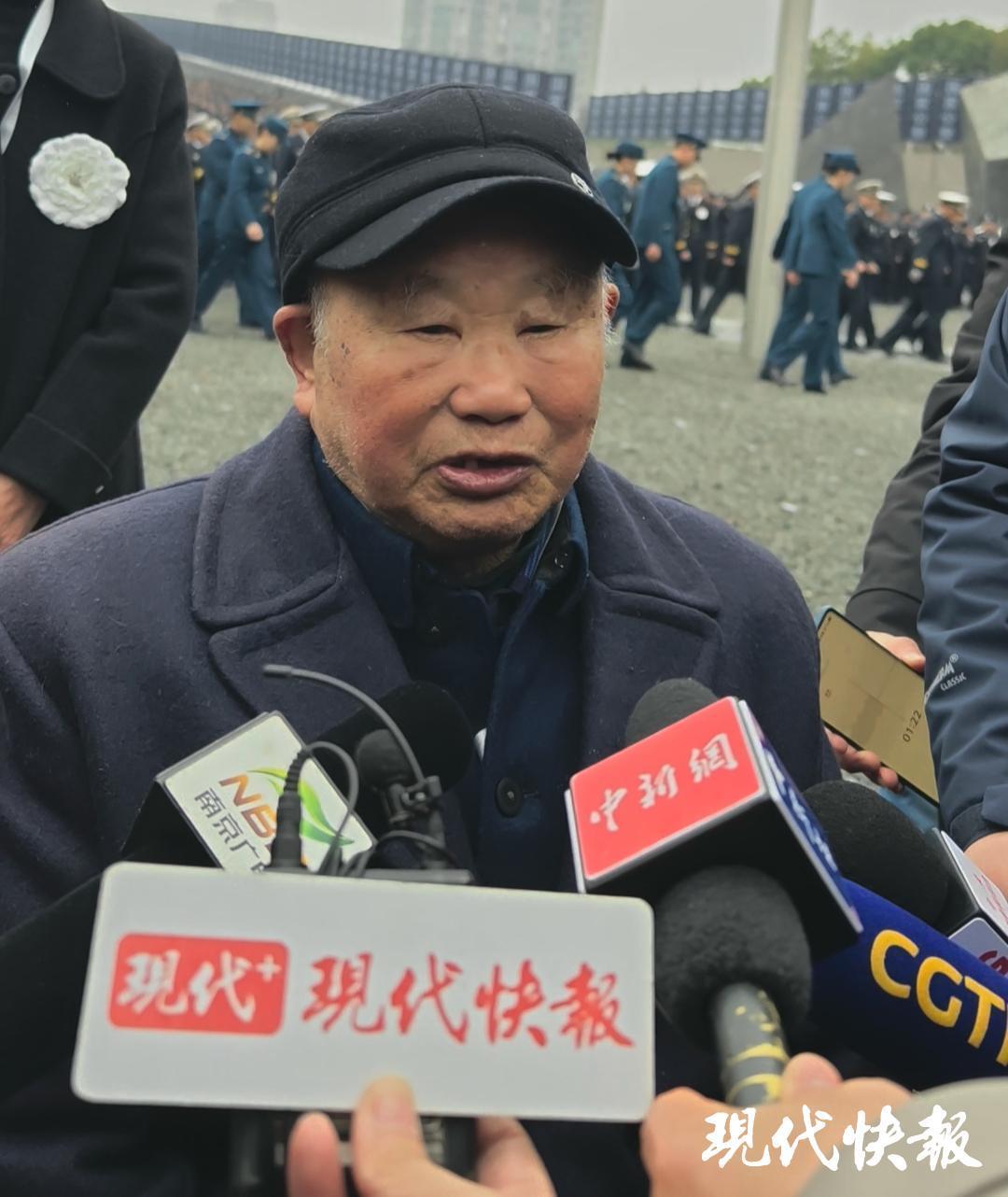 在国家公祭仪式上,91岁的南京大屠杀幸存者刘民生神情肃穆,坐在座椅上。虽然南京大屠杀已经过去88年了,但是失去亲人的痛永远埋藏在刘民生的心里。他的父亲在难民区被侵华日军抓走,最后在下关被杀害。当时年仅3岁的他被父亲抱着,因为一直在哭闹,被日军在腿上刺了一刀,至今还留有伤疤。刘民生说:“那个伤疤是永远忘不掉的,不单是我留下了伤疤,30万人丢掉了性命。这是1937年日本人给我们带来的伤害,要永远记住。国家公祭仪式是国家教育我们后代,子子孙孙不要忘记历史,永远地警钟长鸣,不忘历史,珍爱和平。”