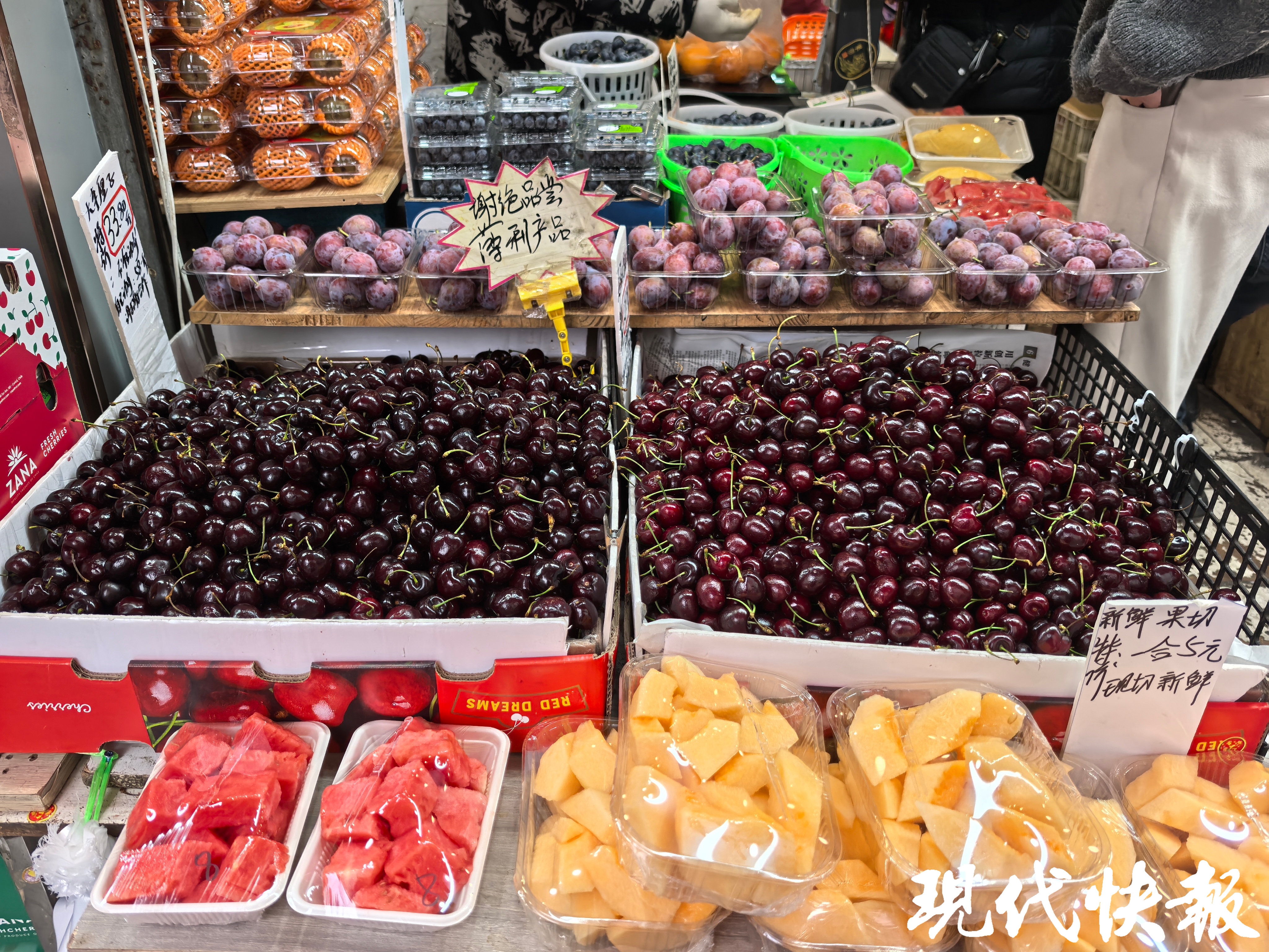 现代快报讯(记者 卢河燕 文/摄)颗颗深红饱满、酸甜爆汁,一入冬天,进口车厘子就如期开启“漂洋过海赴华之旅”。12月23日,现代快报记者走访南京多家商超、水果店发现,车厘子主流售价稳定在30~60元一斤。不少店主表示,今年智利车厘子迎来丰产,上市时间比往年早了些,价格也跟着降了下来。眼下受大家欢迎的“桑提娜”“拉宾斯”,价格较11月上市时降价四五成,预计2026年1月份后价格就会稳稳的。