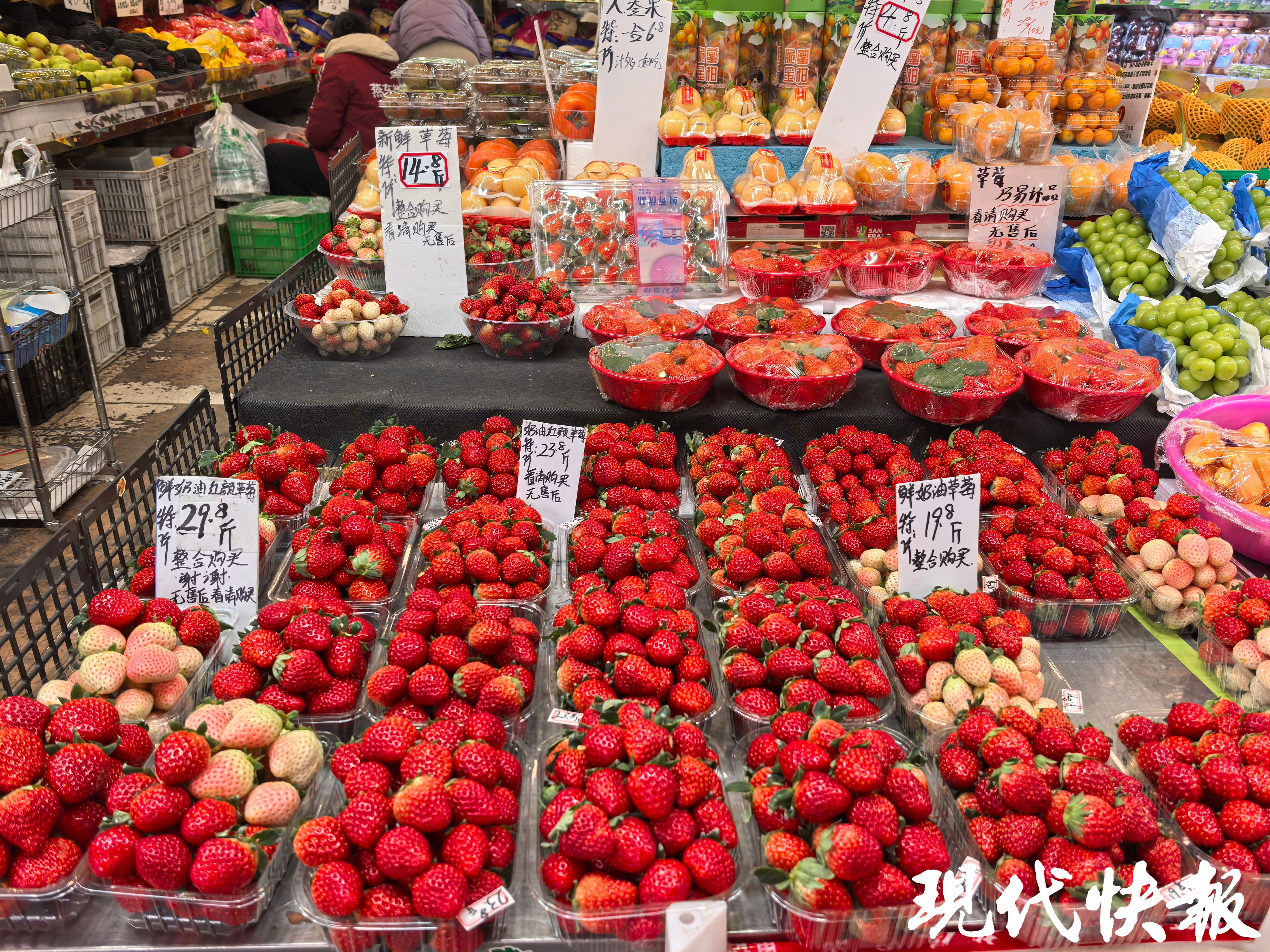 “当前市面上的草莓多为大棚种植,相较于露天自然种植,大棚种植的成本更高,价格自然也偏高。”王瑞分析,此外草莓特别“娇气”,远距离运输和长时间保鲜的成本都很高。“辽宁丹东的草莓运到南京,批发价自然要高一些,一般在三四十元一斤,而南京周边产区的草莓,价格则亲民不少。”据介绍,今年草莓主产区气温偏高,加速了草莓成熟进程,使得12月草莓集中大量上市,预计至春节前二茬草莓上市后,将更加价廉物美。