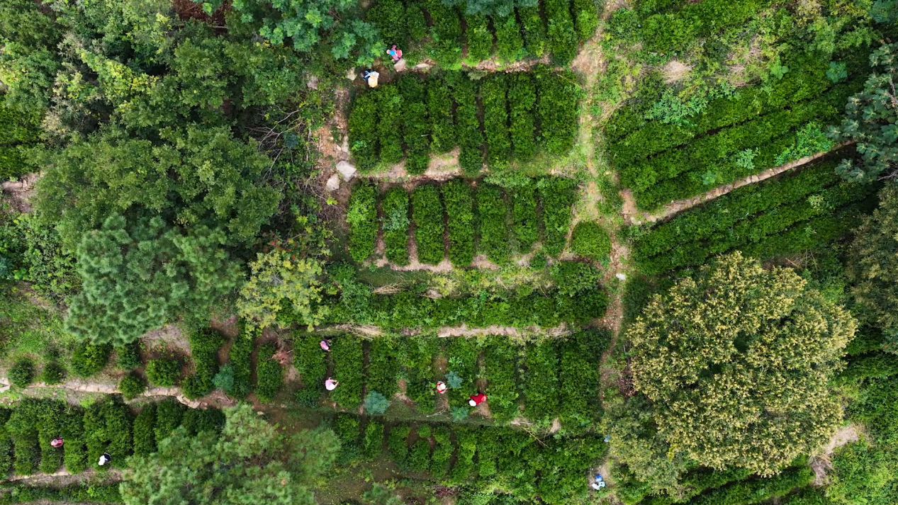 30余名茶农身背茶篓,穿梭在这片碧绿之间,他们手法娴熟,手指在嫩叶中上下翻飞,熟练地将一茎茎嫩绿的新芽采下。随着茶篓逐渐被这清新鲜绿的嫩芽铺满,丰收的喜悦也随之荡漾在这片翠色天地之间。
