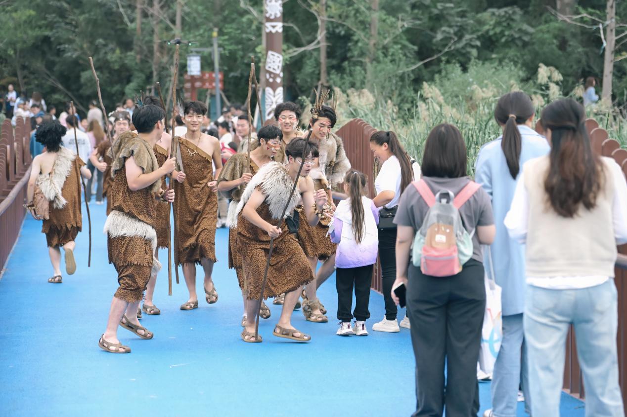 近日,连云港桃花涧景区“东夷部落野趣季”活动预演热闹开启。现场,身着原始部落服饰的NPC活跃于山林之间,与前来体验的游客热情互动,生动再现东夷先民狩猎、祭祀等生活场景,欢声笑语不绝于耳,为即将在国庆中秋长假期间正式推出的活动成功预热。