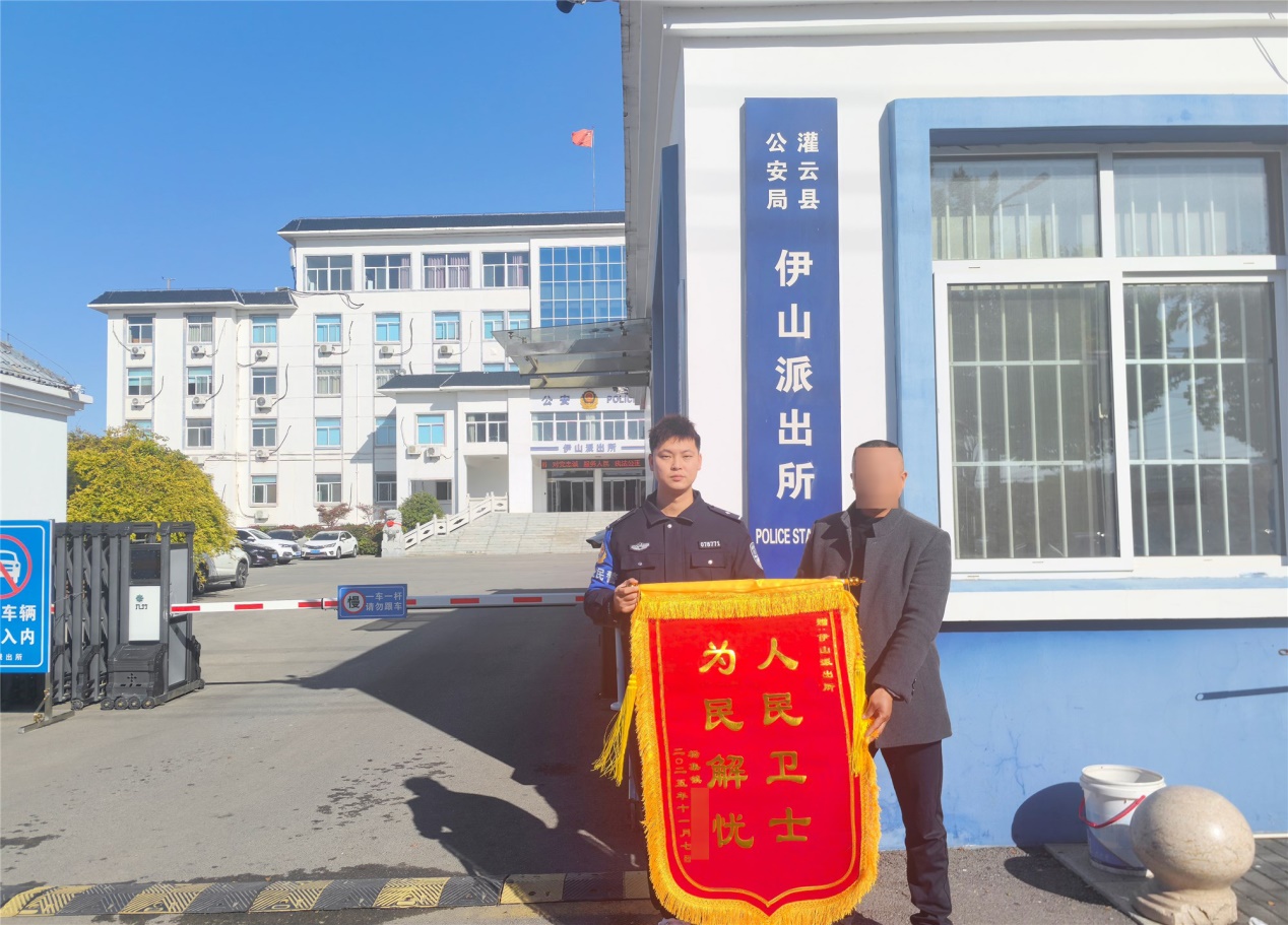 “王警官,真的太感谢你了,真没想到我被骗走的钱还能拿回来……”11月10日上午,居民丁先生将一面印有“人民卫士,为民解忧”的锦旗送到灌云县公安局伊山派出所民警王家宇手中,感谢民警为其追回被骗的钱财。