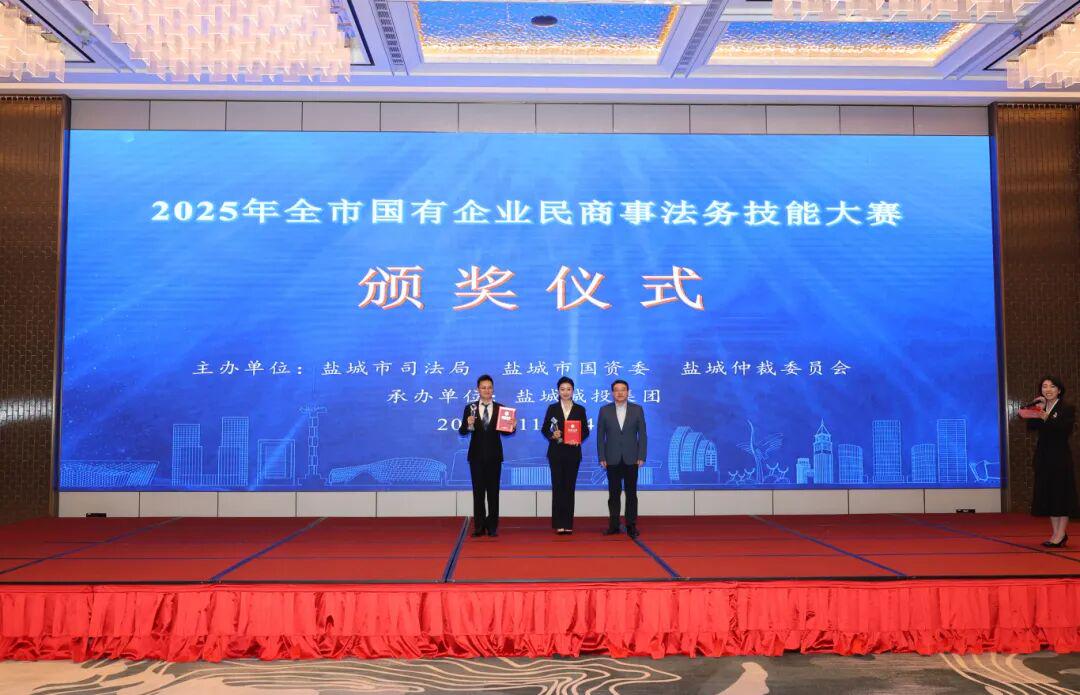 为持续深化法治国企建设,进一步提高全市国有企业法务工作水平,提升法务人员专业素养,增强国企法律风险防控能力,11月24日,盐城市国资委、市司法局、盐城仲裁委联合举办2025年全市国有企业民商事法务技能大赛决赛。在各市属企业及各县(市、区)国资办报送的40部参赛作品中,城投集团参赛选手顾娴静凭借《从物业纠纷看国企法务的破局智慧》的精彩呈现脱颖而出,荣获一等奖。