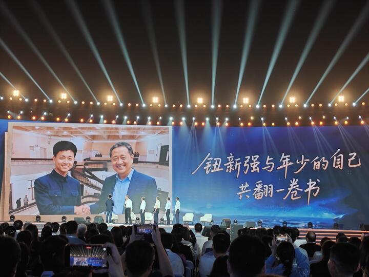 现场,AI为五位河海校友唤醒了青春模样,那些当年在教室抢座、在河边立志、在溜冰场驰骋的年轻身影,终于在屏幕上与如今的他们完成了一场跨时空相约。一边是鬓角染霜、手握国之重器的水利脊梁,一边是眼神清亮、怀揣赤子之心的少年郎,当两代“自己”隔空相望,流淌的不仅是个人的岁月故事,更是一代代河海人“治水兴邦”的初心传承。
