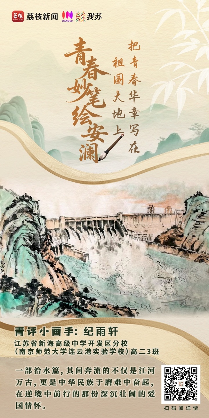 千年水韵,润泽江苏。在这片因水而兴、依水而盛的土地上,治水的智慧始终与为民的初心交相辉映。一代代奋斗者以水为笔、以民为本,将安澜兴水、生态惠民的时代华章,深深写入江苏大地的壮阔图景。青年是祖国的未来,民族复兴的伟业更需青春力量的接续奋斗,来自江苏的高中生们以画笔为媒,将千年治水智慧与新时代水利成就凝于尺素之间。