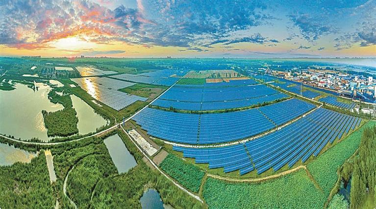 更令人欣喜的是,废弃工矿正在变成“聚宝盆”。华润电力在沛县建设的智慧能源光伏基地,总面积10534亩,装机容量500兆瓦,采用农光、渔光互补复合型光伏发电。“项目全部建成后,年均可提供清洁电能超6亿千瓦时,每年折算下来可节约标煤19万吨,减少二氧化碳排放约49万吨。”基地项目经理说。