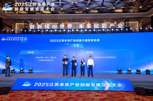 8月30日,在2025江苏未来产业创新发展交流大会现场,2025江苏未来产业创新创业大赛获奖名单正式公布。大赛初创组设2名一等奖、3名二等奖、7名三等奖及8名优秀奖,成长组设1名一等奖、2名二等奖、5名三等奖及6名优秀奖。其中,珈云新材料(徐州)有限公司与江苏凝视科技有限公司摘得初创组一等奖,扬州纳力新材料科技有限公司获成长组一等奖。江苏省发改委、江苏高科技投资集团等有关单位领导为获奖企业颁奖。