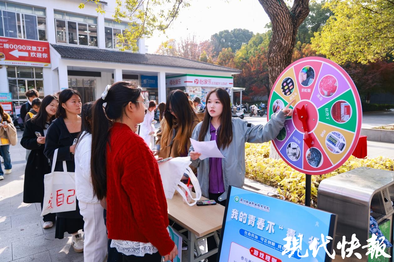 活动现场设置了“防艾投壶——竞猜答题”“红丝带的承诺——自制红丝带便签”“我的青春不‘毒’行——大转盘识毒”“把爱‘袋’回家——帆布袋DIY”以及“‘艾’的抱抱”等游戏环节,吸引了大量师生驻足参与,现场气氛热烈。姑苏疾控的医生们还在广场上将精心准备的艾滋病预防知识传单和礼品发放到同学手中,一一耐心解答学生提问,互动氛围热烈。