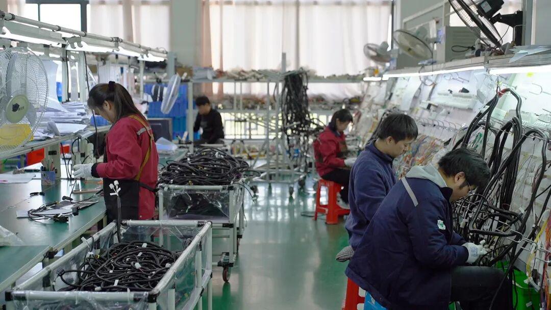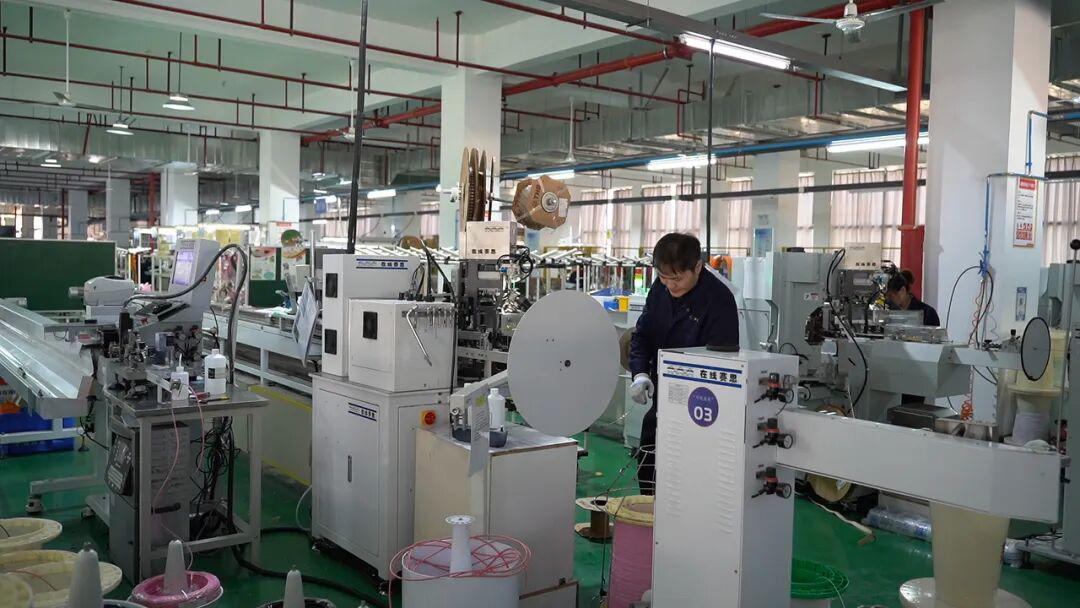 其中,全自动压接机的投入使用,改变了该环节以往主要依赖人工作业的局面。过去,每条产线从裁线、拨线到套管、压接共需5名工人,现在仅需1人即可完成全部流程,不仅大幅节约了人工成本,生产效率也提高了30%。明年,公司计划进一步加大投入,引进一批全自动AGV小车,实现从传统人工运输向机器人自动运输的转变,持续提升生产效能。