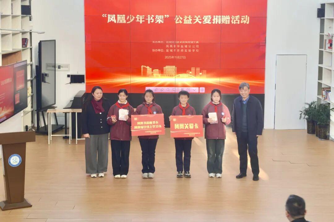 日前,盐城市京师实验学校图书馆内洋溢着温暖愉悦的气氛,由盐城经开区团工委联合凤凰新华盐城分公司举办的“凤凰少年书架”公益捐赠仪式在此举行,为校园增添了浓郁书香。